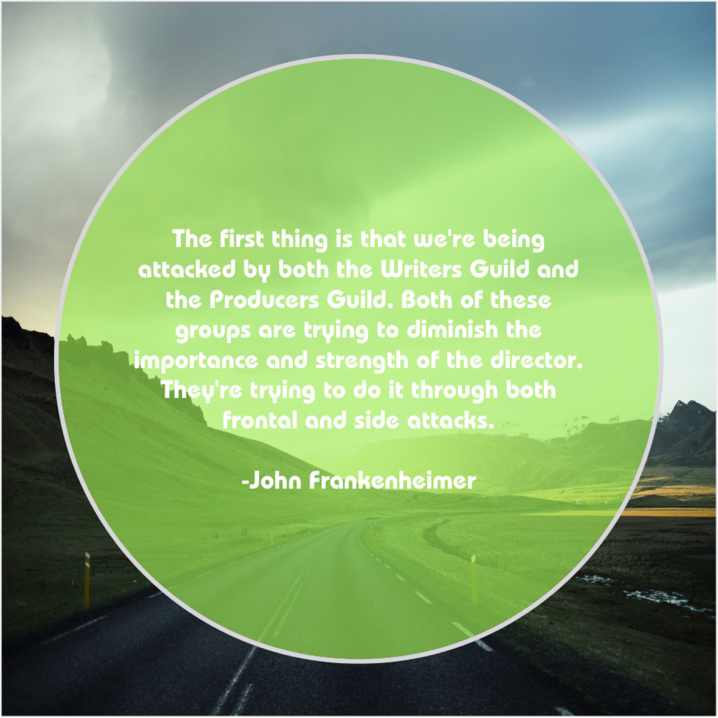 “The first thing is that we’re being attacked by both the Writers Guild and the Producers Guild. Both of these groups are trying to diminish the importance and strength of the director. They’re trying to do it through both frontal and side attacks.”