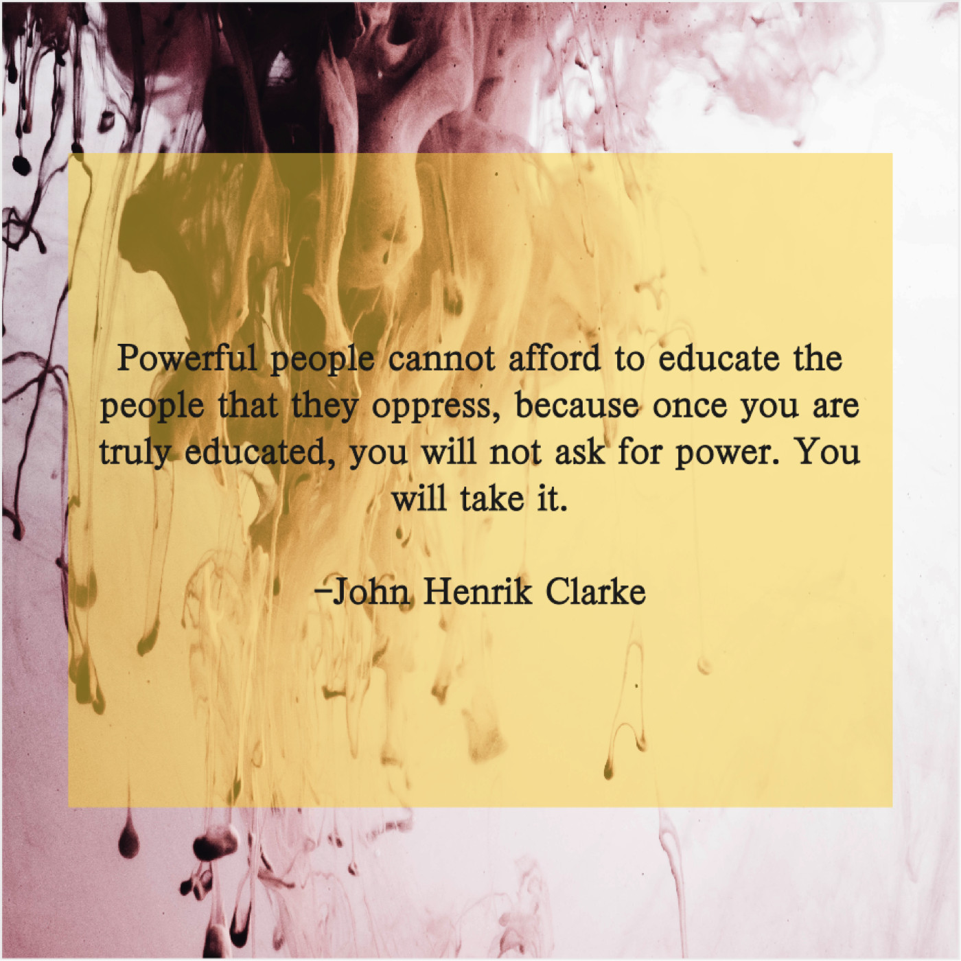John Henrik Clarke John Henrik Clarke – Powerful people cannot afford to… March 24, 2019 admin “Powerful people cannot afford to educate the people that they oppress, because once you are truly educated, you will not ask for power. You will take it.”-John Henrik Clarke