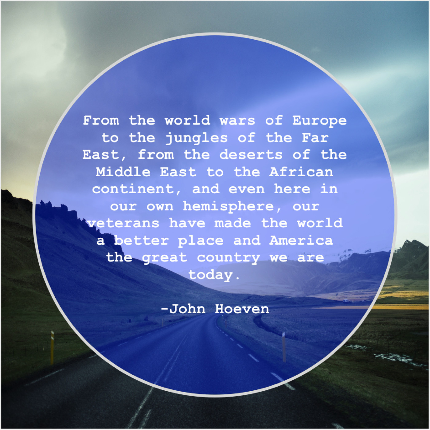 “From the world wars of Europe to the jungles of the Far East, from the deserts of the Middle East to the African continent, and even here in our own hemisphere, our veterans have made the world a better place and America the great country we are today.”