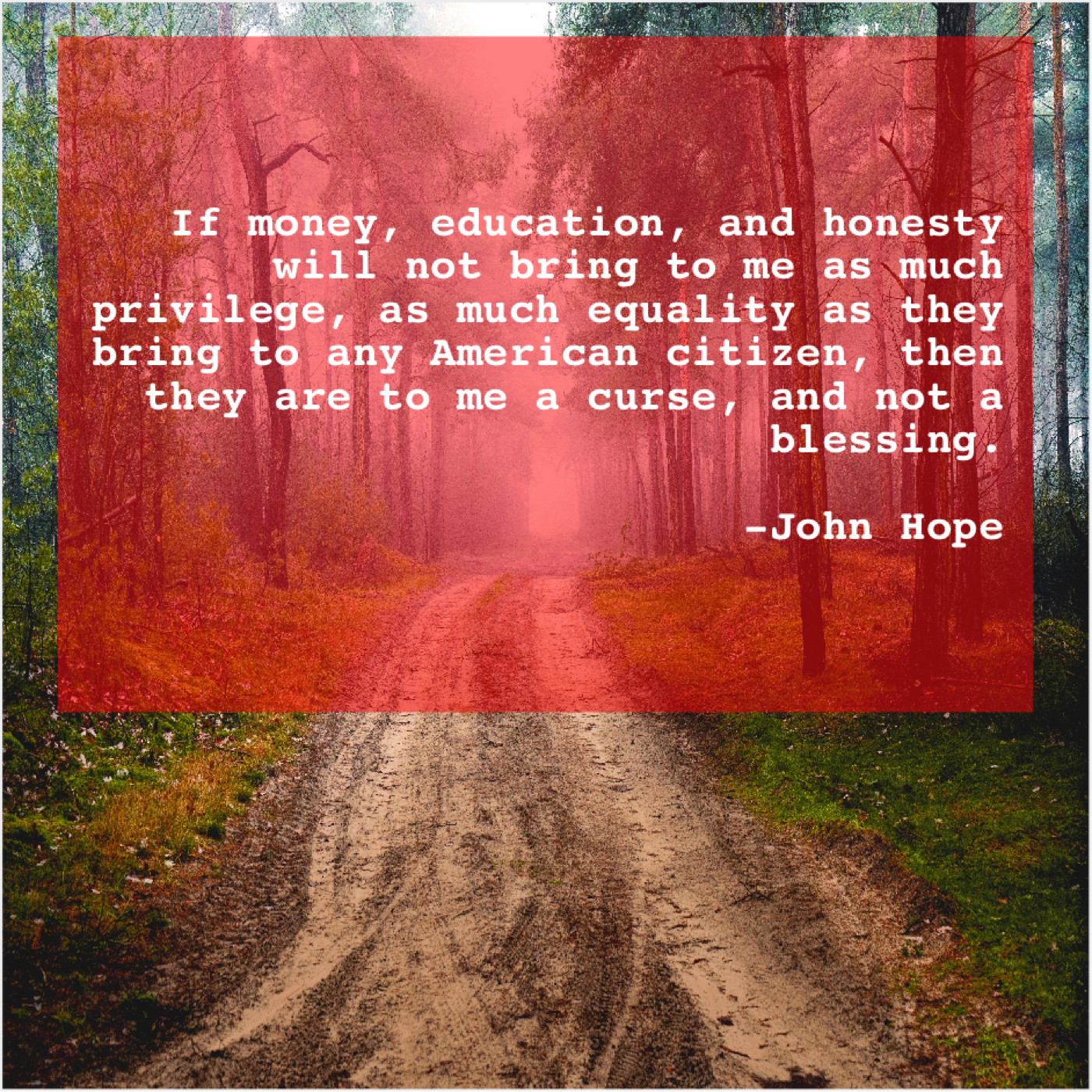 John Hope John Hope – If money, education, and honesty… June 6, 2019 admin “If money, education, and honesty will not bring to me as much privilege, as much equality as they bring to any American citizen, then they are to me a curse, and not a blessing.”-John Hope