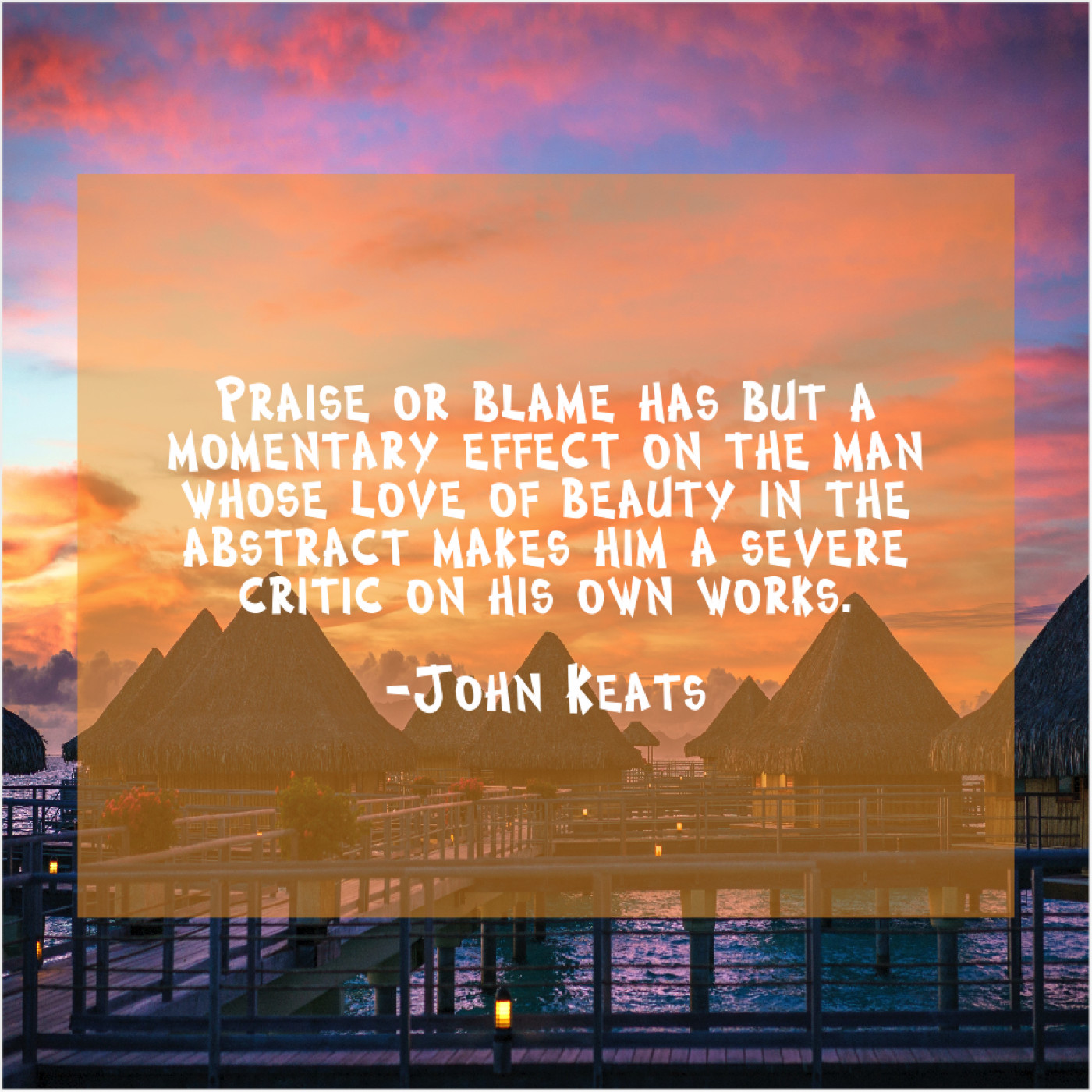John Keats John Keats – Praise or blame has but… March 12, 2019 admin “Praise or blame has but a momentary effect on the man whose love of beauty in the abstract makes him a severe critic on his own works.”-John Keats