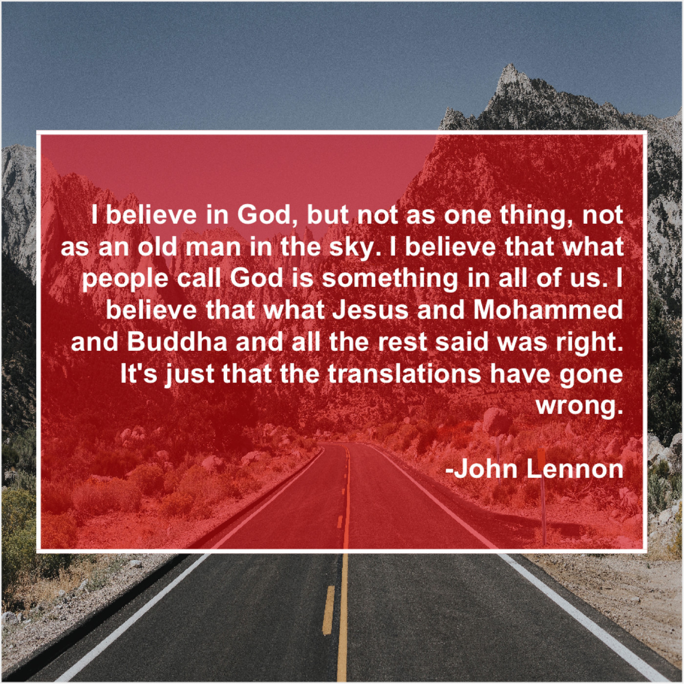 “I believe in God, but not as one thing, not as an old man in the sky. I believe that what people call God is something in all of us. I believe that what Jesus and Mohammed and Buddha and all the rest said was right. It’s just that the translations have gone wrong.”