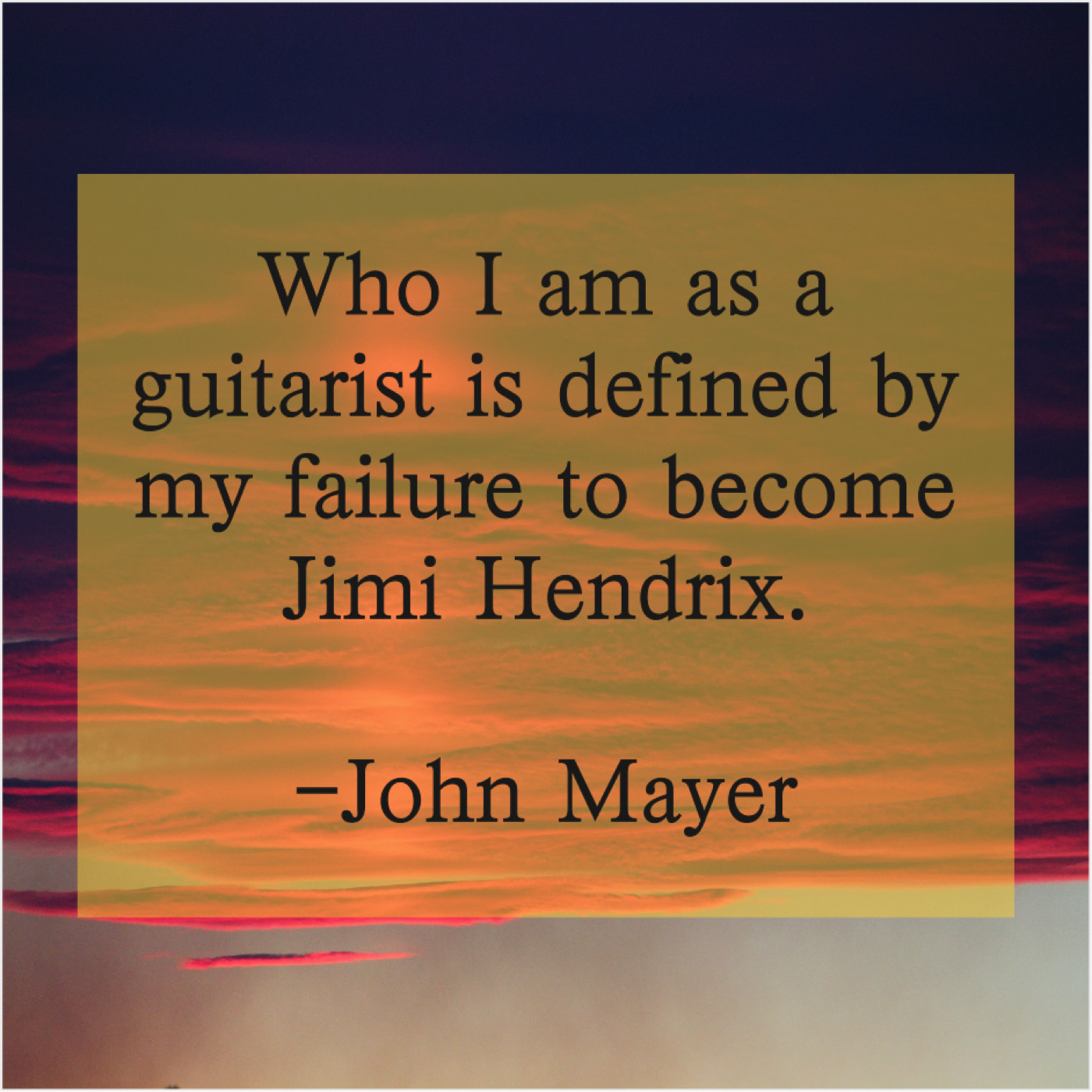 John Mayer John Mayer – Who I am as a… November 22, 2018 admin “Who I am as a guitarist is defined by my failure to become Jimi Hendrix.”-John Mayer