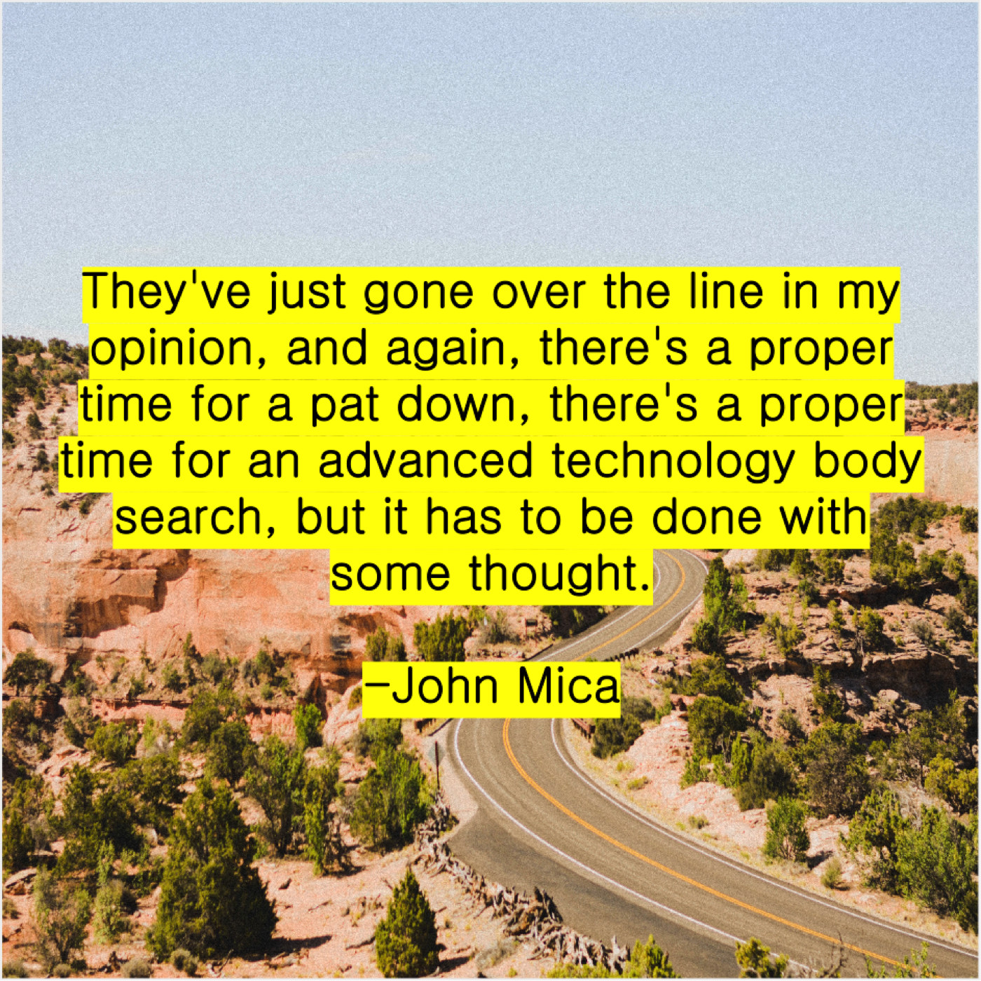 John Mica John Mica – They’ve just gone over the… March 17, 2019 admin “They’ve just gone over the line in my opinion, and again, there’s a proper time for a pat down, there’s a proper time for an advanced technology body search, but it has to be done with some thought.”-John Mica