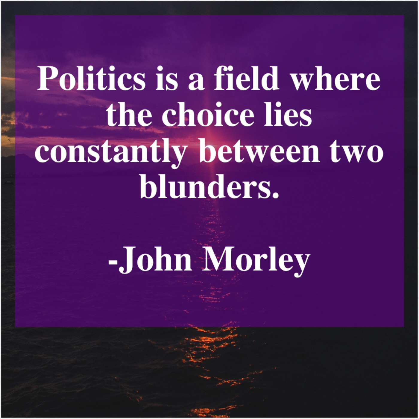 John Morley John Morley – Politics is a field where… January 9, 2019 admin “Politics is a field where the choice lies constantly between two blunders.”-John Morley