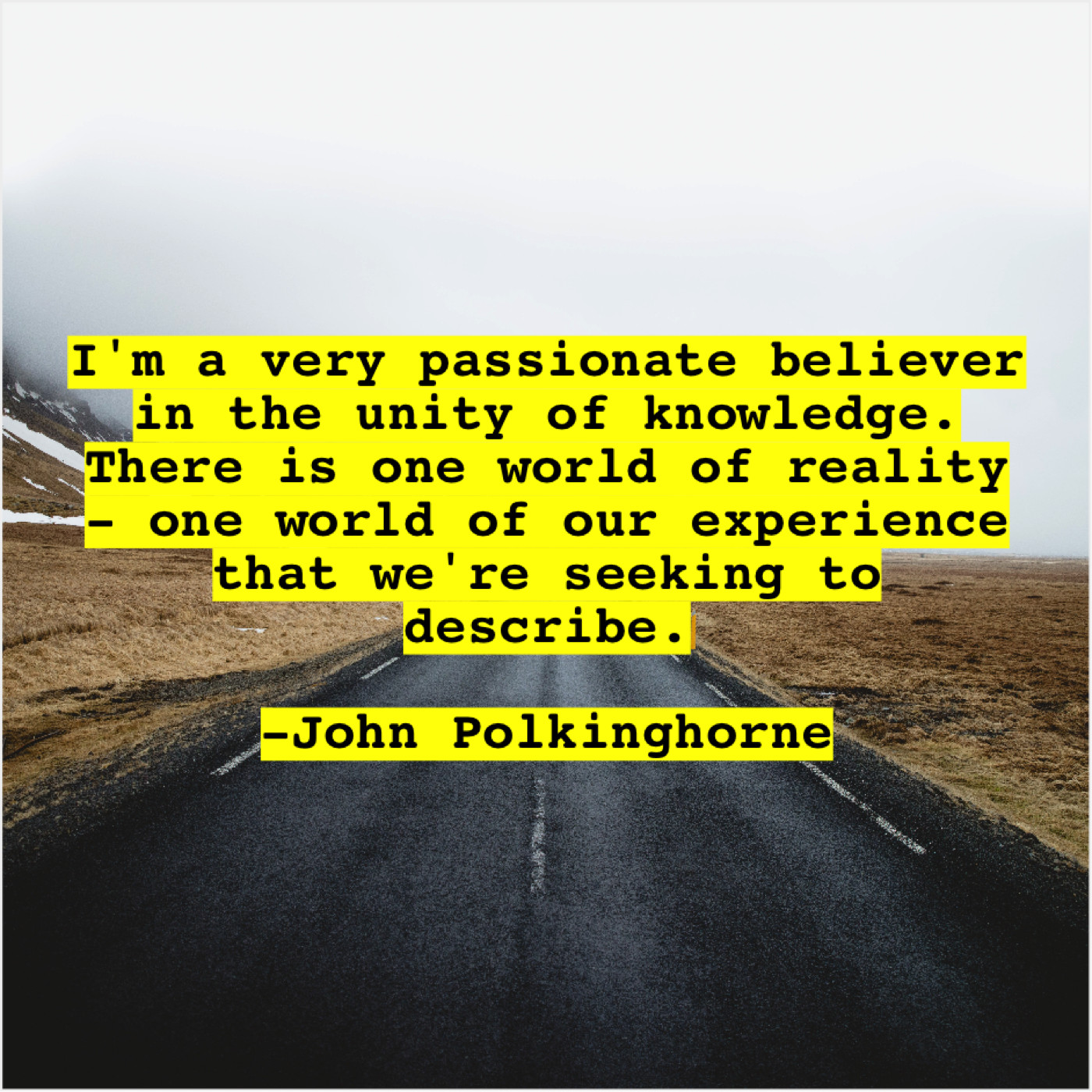 John Polkinghorne John Polkinghorne – I’m a very passionate believer… September 12, 2019 admin “I’m a very passionate believer in the unity of knowledge. There is one world of reality – one world of our experience that we’re seeking to describe.”-John Polkinghorne