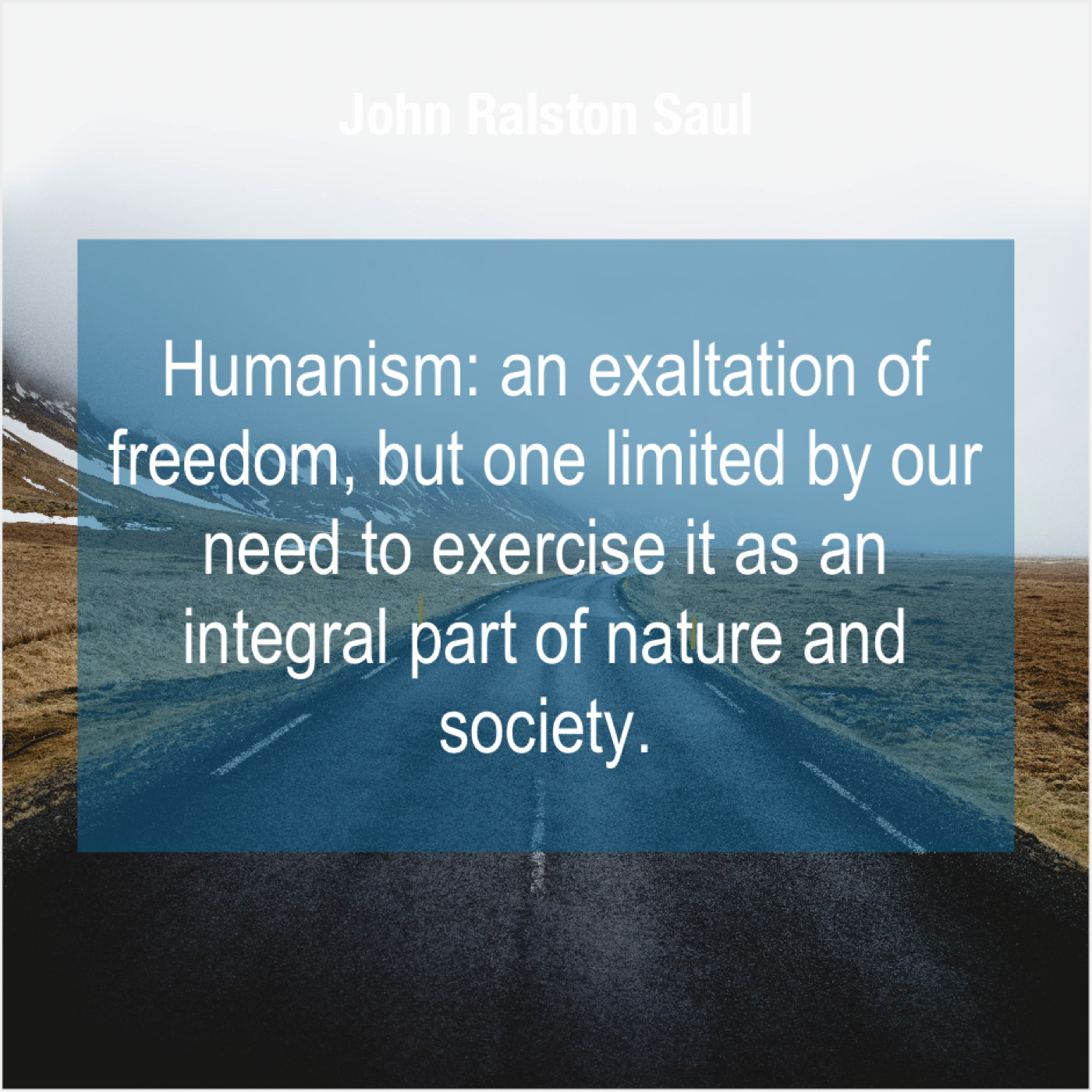 John Ralston Saul John Ralston Saul – Humanism: an exaltation of freedom… September 8, 2019 admin “Humanism: an exaltation of freedom, but one limited by our need to exercise it as an integral part of nature and society.”-John Ralston Saul