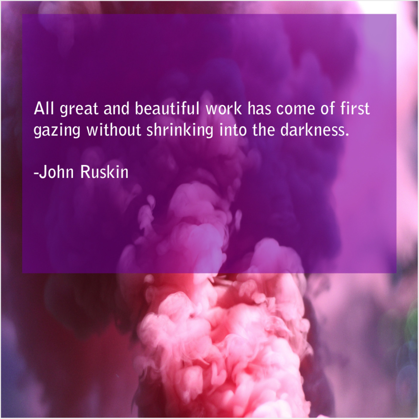 John Ruskin John Ruskin – All great and beautiful work… February 14, 2019 admin “All great and beautiful work has come of first gazing without shrinking into the darkness.”-John Ruskin