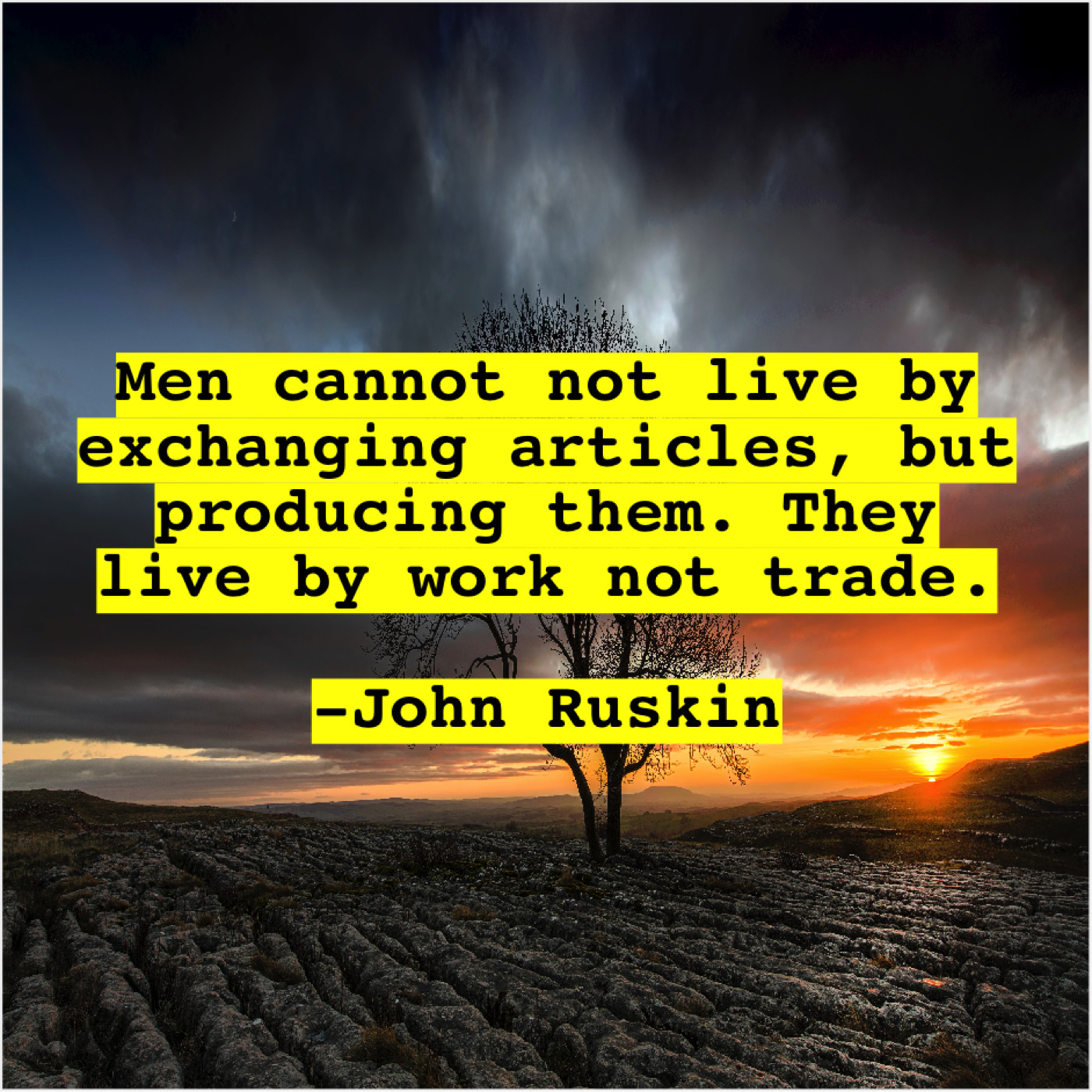 John Ruskin John Ruskin – Men cannot not live by… September 28, 2019 admin “Men cannot not live by exchanging articles, but producing them. They live by work not trade.”-John Ruskin