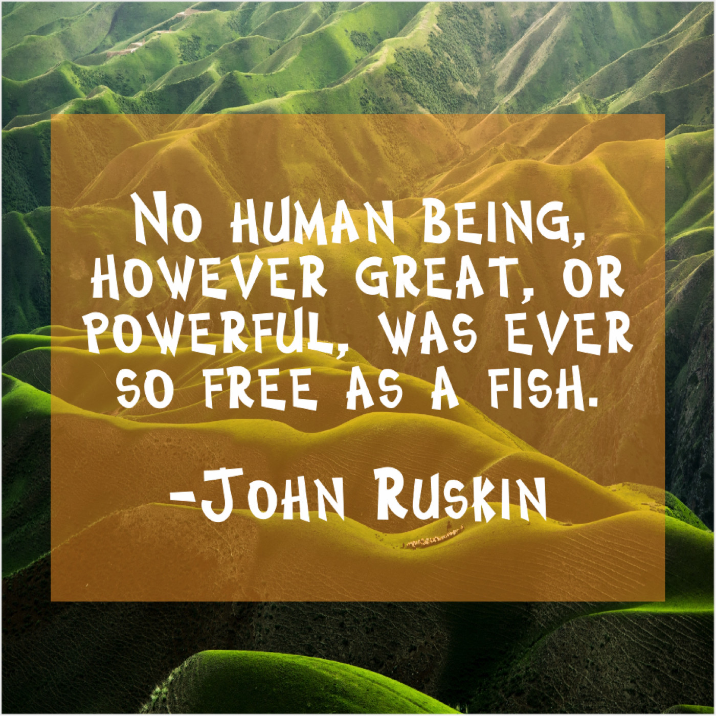 John Ruskin John Ruskin – No human being, however great… August 19, 2019 admin “No human being, however great, or powerful, was ever so free as a fish.”-John Ruskin