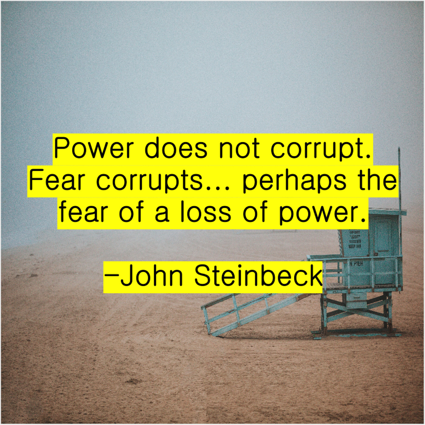 John Steinbeck John Steinbeck – Power does not corrupt. Fear… July 28, 2019 admin “Power does not corrupt. Fear corrupts… perhaps the fear of a loss of power.”-John Steinbeck