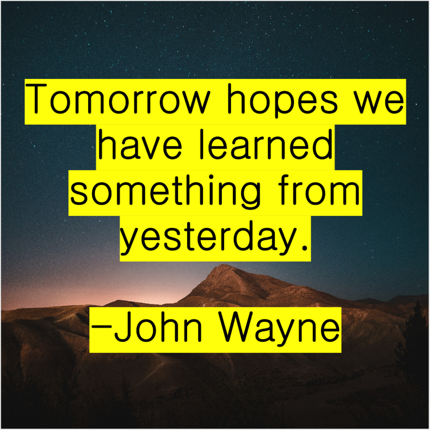 John Wayne John Wayne – Tomorrow hopes we have learned… July 23, 2019 admin “Tomorrow hopes we have learned something from yesterday.”-John Wayne