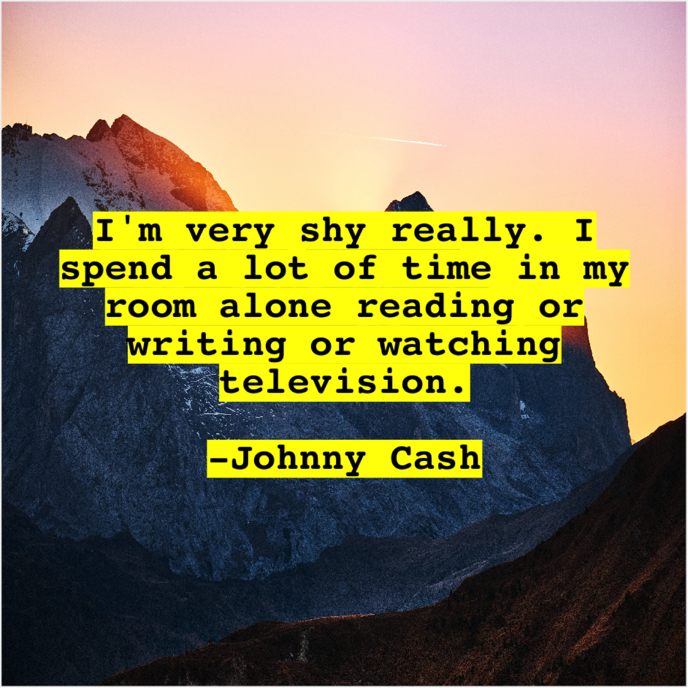 Johnny Cash Johnny Cash – I’m very shy really. I… November 27, 2018 admin “I’m very shy really. I spend a lot of time in my room alone reading or writing or watching television.”-Johnny Cash