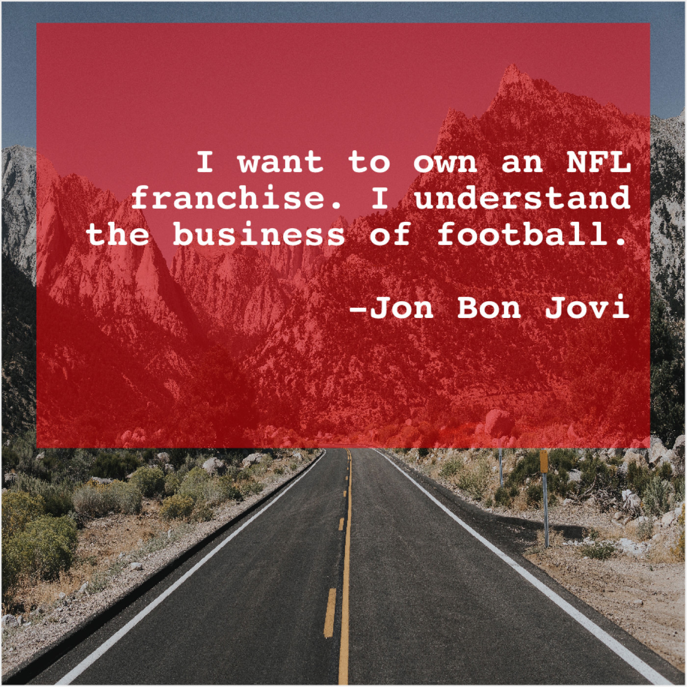Jon Bon Jovi Jon Bon Jovi – I want to own an… November 19, 2018 admin “I want to own an NFL franchise. I understand the business of football.”-Jon Bon Jovi