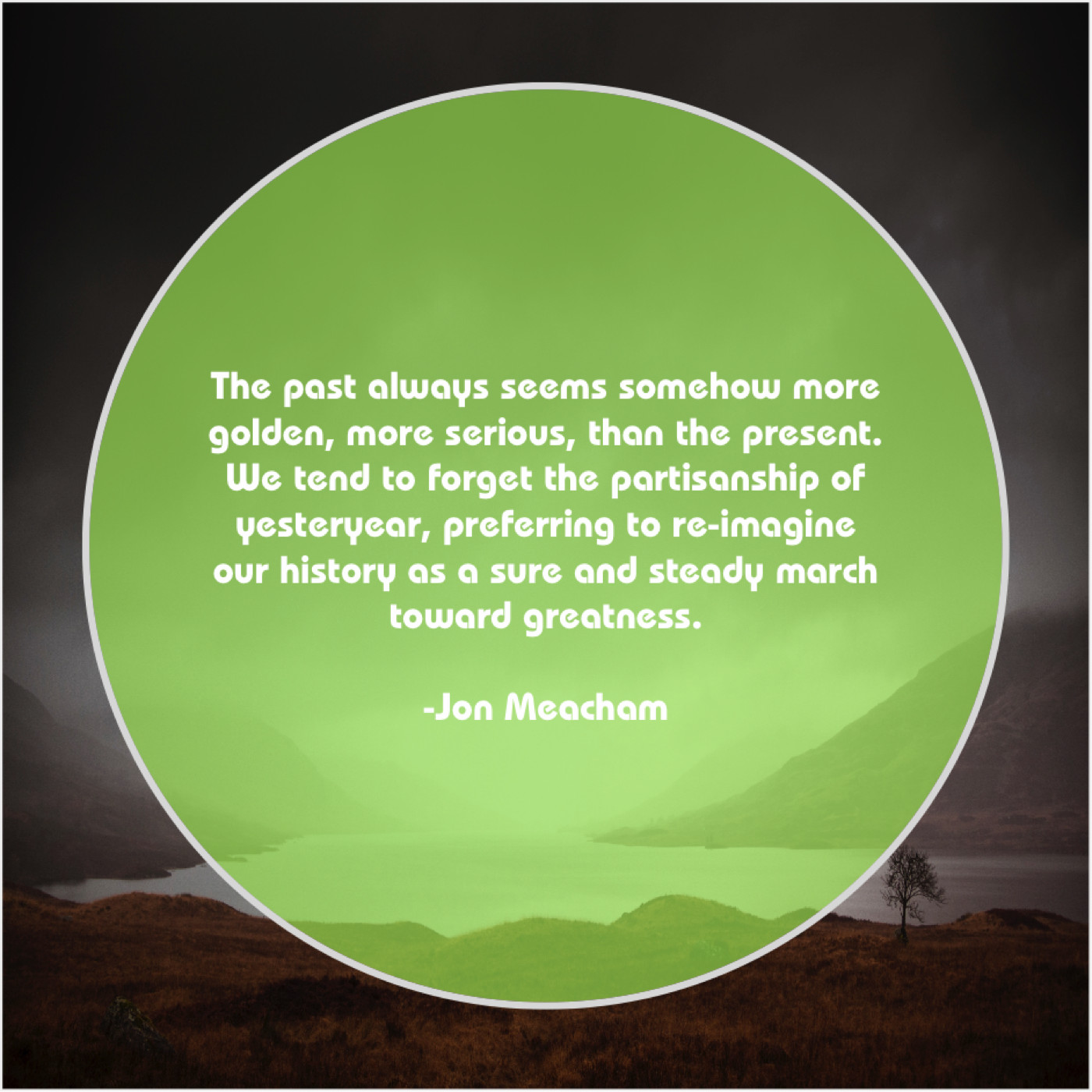 Jon Meacham Jon Meacham – The past always seems somehow… April 1, 2019 admin “The past always seems somehow more golden, more serious, than the present. We tend to forget the partisanship of yesteryear, preferring to re-imagine our history as a sure and steady march toward greatness.”-Jon Meacham