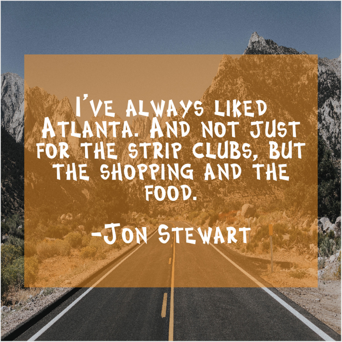 Jon Stewart Jon Stewart – I’ve always liked Atlanta. And… June 30, 2019 admin “I’ve always liked Atlanta. And not just for the strip clubs, but the shopping and the food.”-Jon Stewart