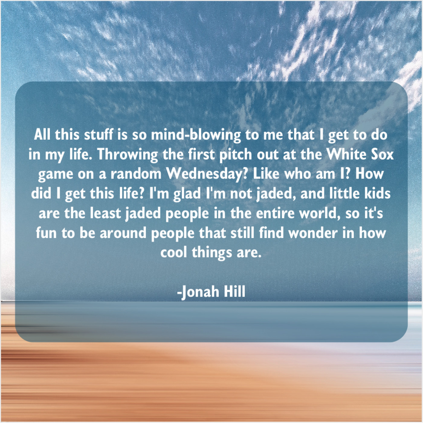 “All this stuff is so mind-blowing to me that I get to do in my life. Throwing the first pitch out at the White Sox game on a random Wednesday? Like who am I? How did I get this life? I’m glad I’m not jaded, and little kids are the least jaded people in the entire world, so it’s fun to be around people that still find wonder in how cool things are.”