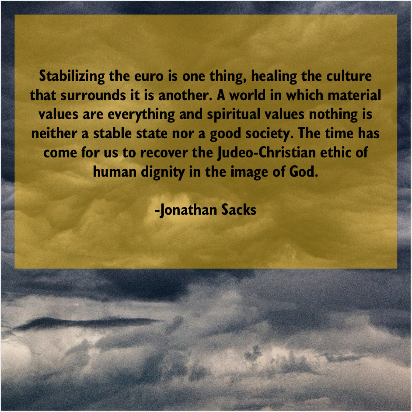 “Stabilizing the euro is one thing, healing the culture that surrounds it is another. A world in which material values are everything and spiritual values nothing is neither a stable state nor a good society. The time has come for us to recover the Judeo-Christian ethic of human dignity in the image of God.”