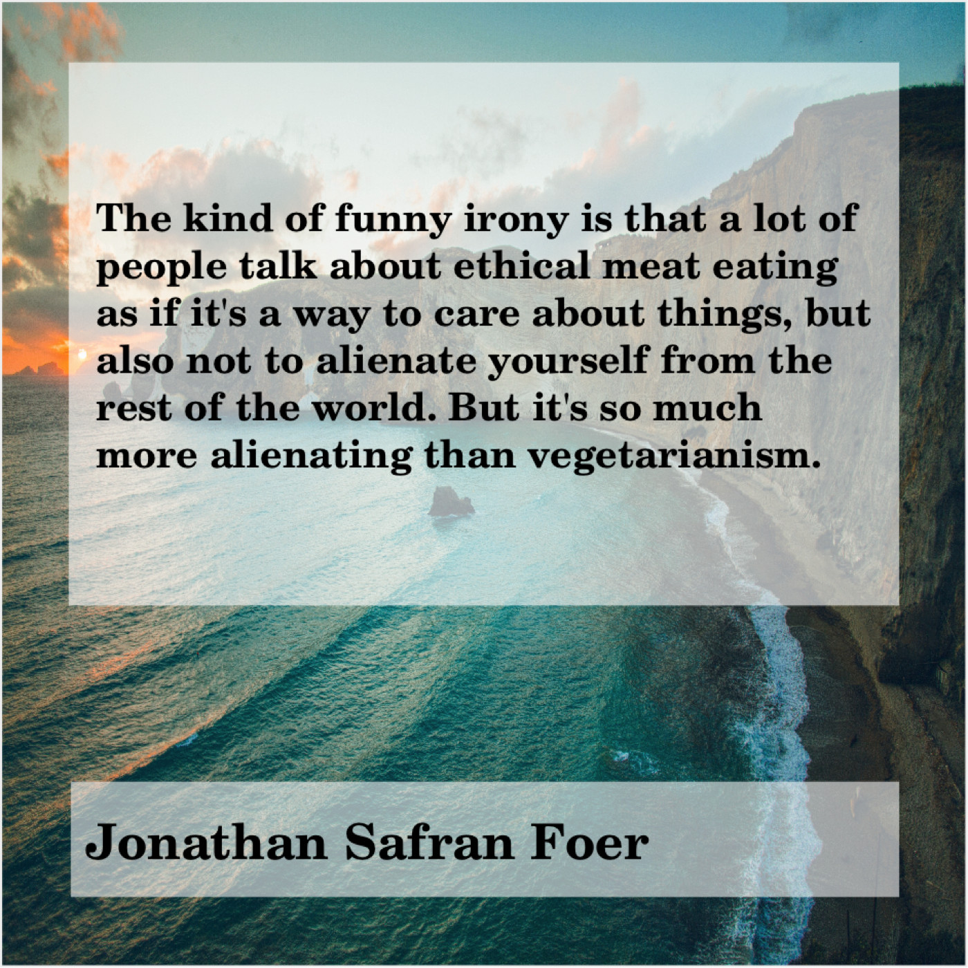 “The kind of funny irony is that a lot of people talk about ethical meat eating as if it’s a way to care about things, but also not to alienate yourself from the rest of the world. But it’s so much more alienating than vegetarianism.”