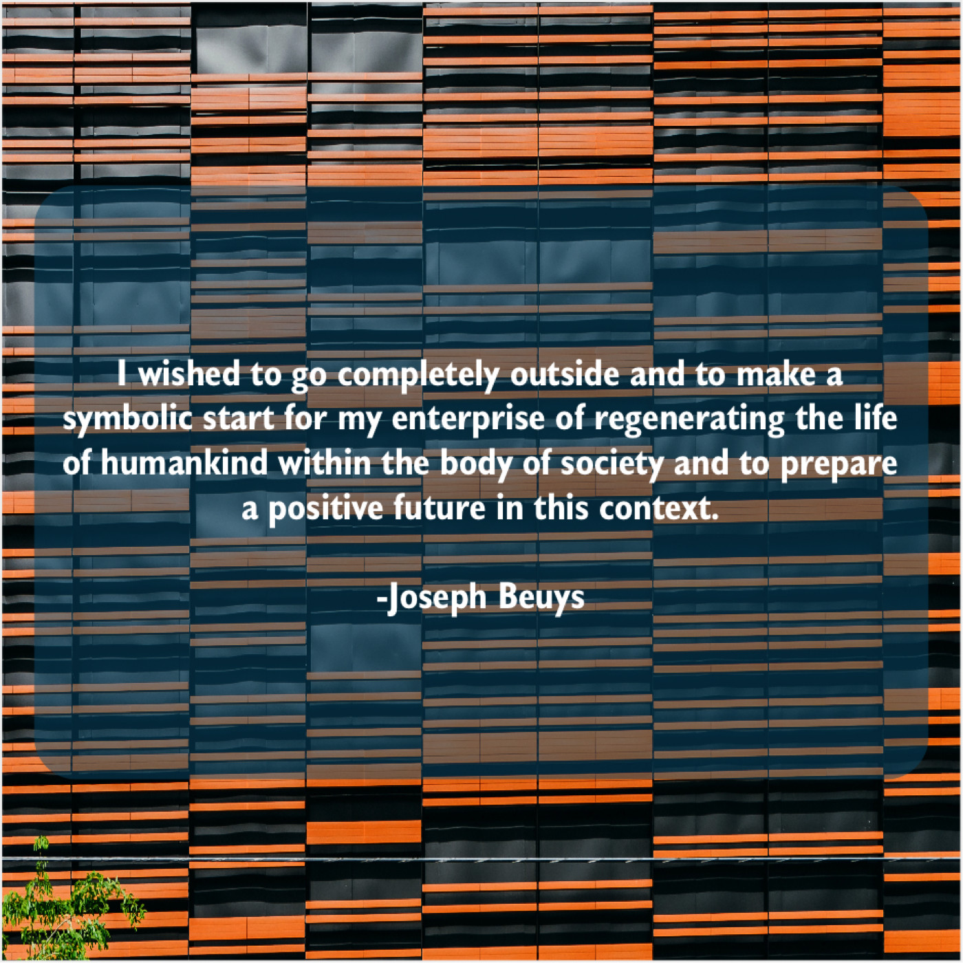 Joseph Beuys Joseph Beuys – I wished to go completely… April 23, 2019 admin “I wished to go completely outside and to make a symbolic start for my enterprise of regenerating the life of humankind within the body of society and to prepare a positive future in this context.”-Joseph Beuys