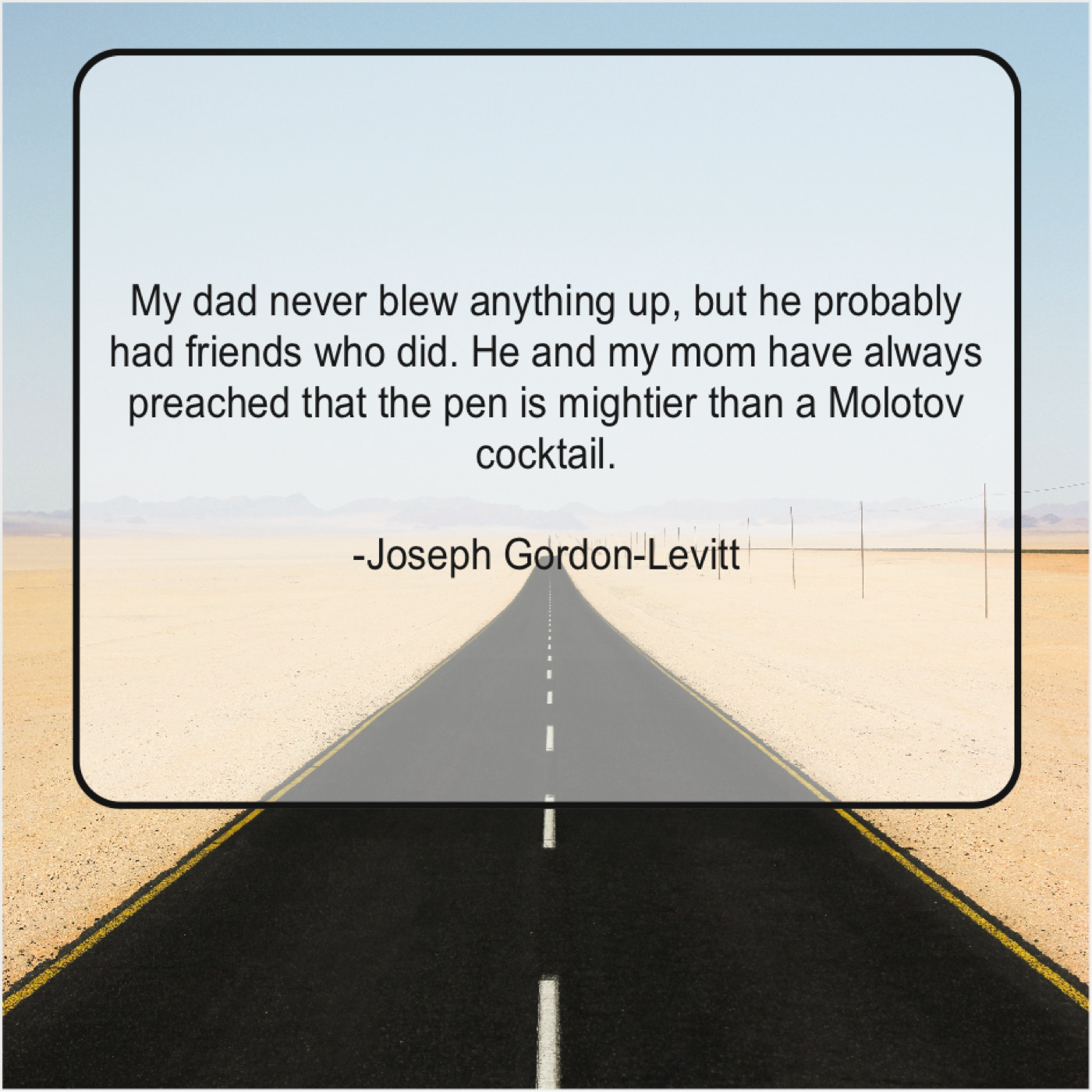 “My dad never blew anything up, but he probably had friends who did. He and my mom have always preached that the pen is mightier than a Molotov cocktail.”