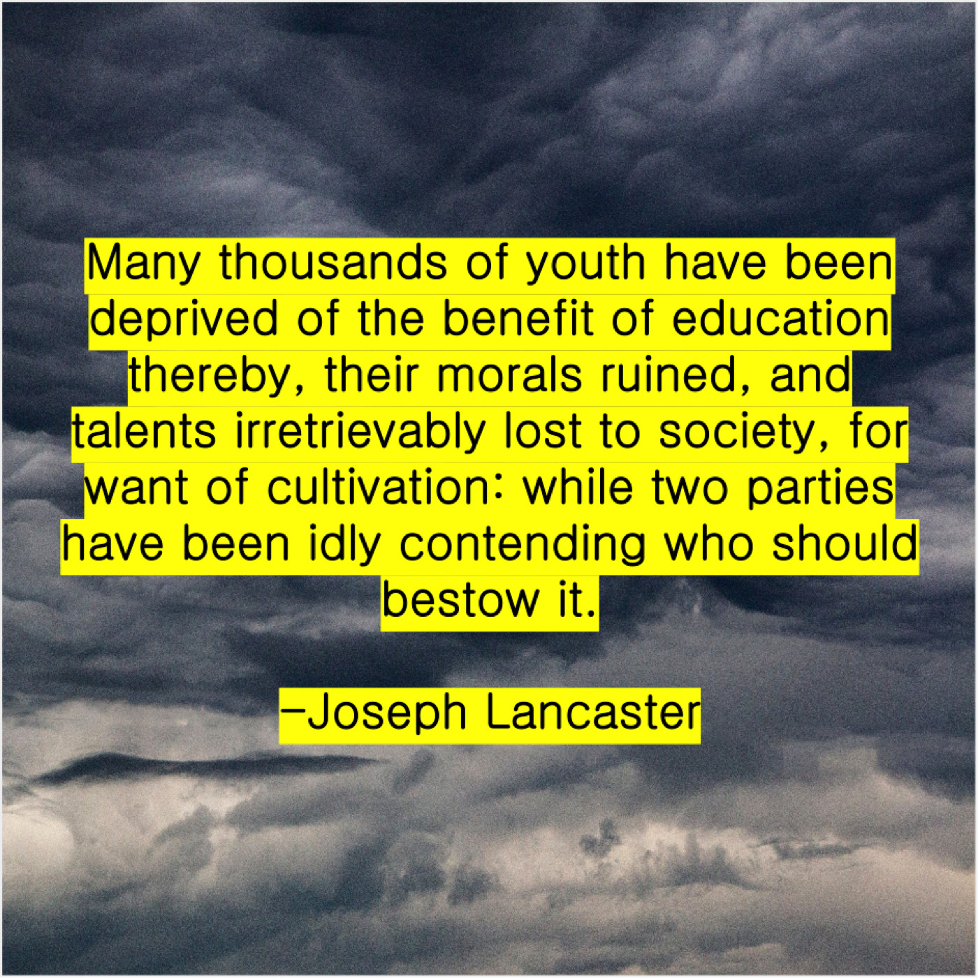 “Many thousands of youth have been deprived of the benefit of education thereby, their morals ruined, and talents irretrievably lost to society, for want of cultivation: while two parties have been idly contending who should bestow it.”