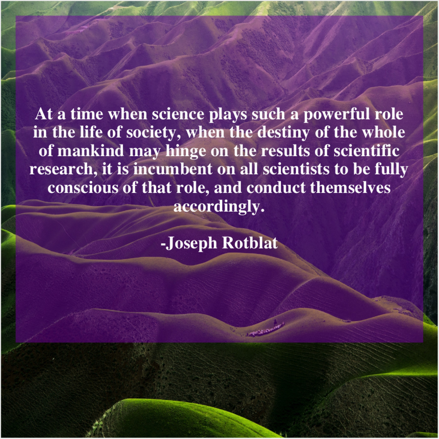 “At a time when science plays such a powerful role in the life of society, when the destiny of the whole of mankind may hinge on the results of scientific research, it is incumbent on all scientists to be fully conscious of that role, and conduct themselves accordingly.”