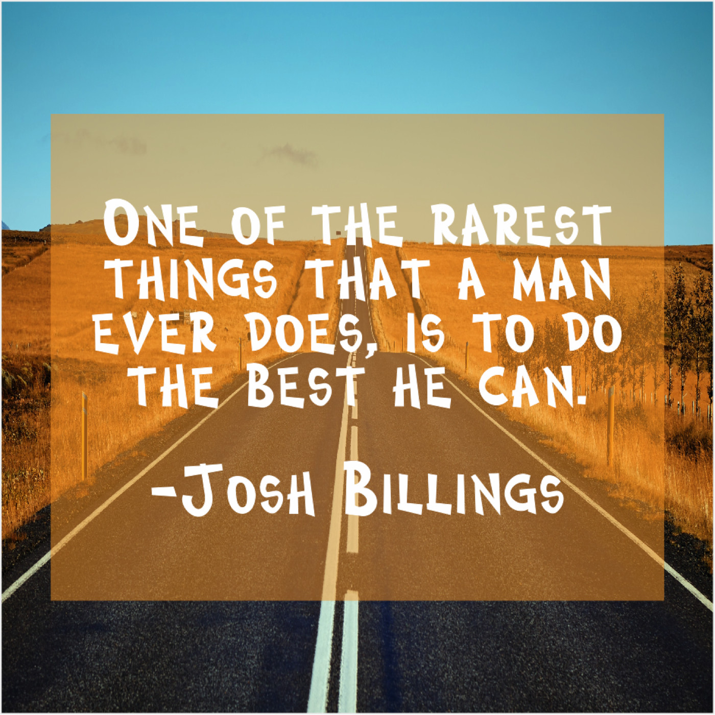 Josh Billings Josh Billings – One of the rarest things… November 21, 2018 admin “One of the rarest things that a man ever does, is to do the best he can.”-Josh Billings