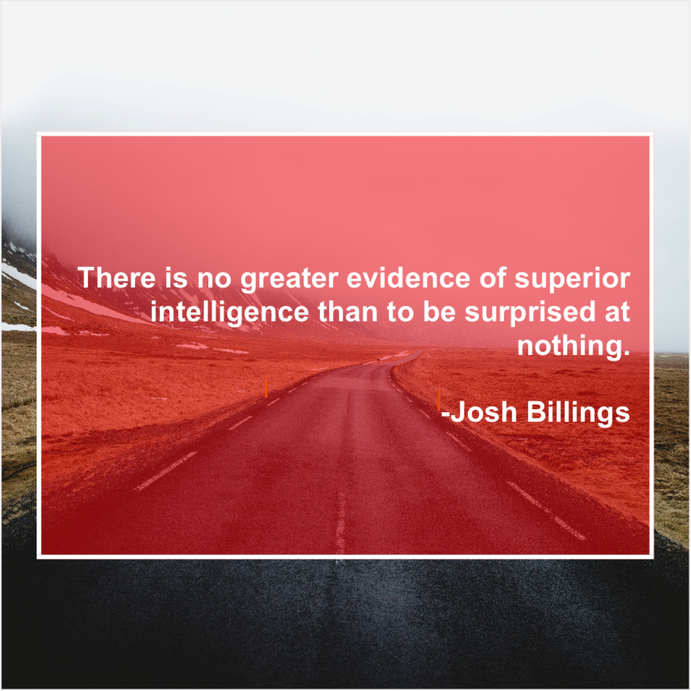 Josh Billings Josh Billings – There is no greater evidence… December 7, 2018 admin “There is no greater evidence of superior intelligence than to be surprised at nothing.”-Josh Billings