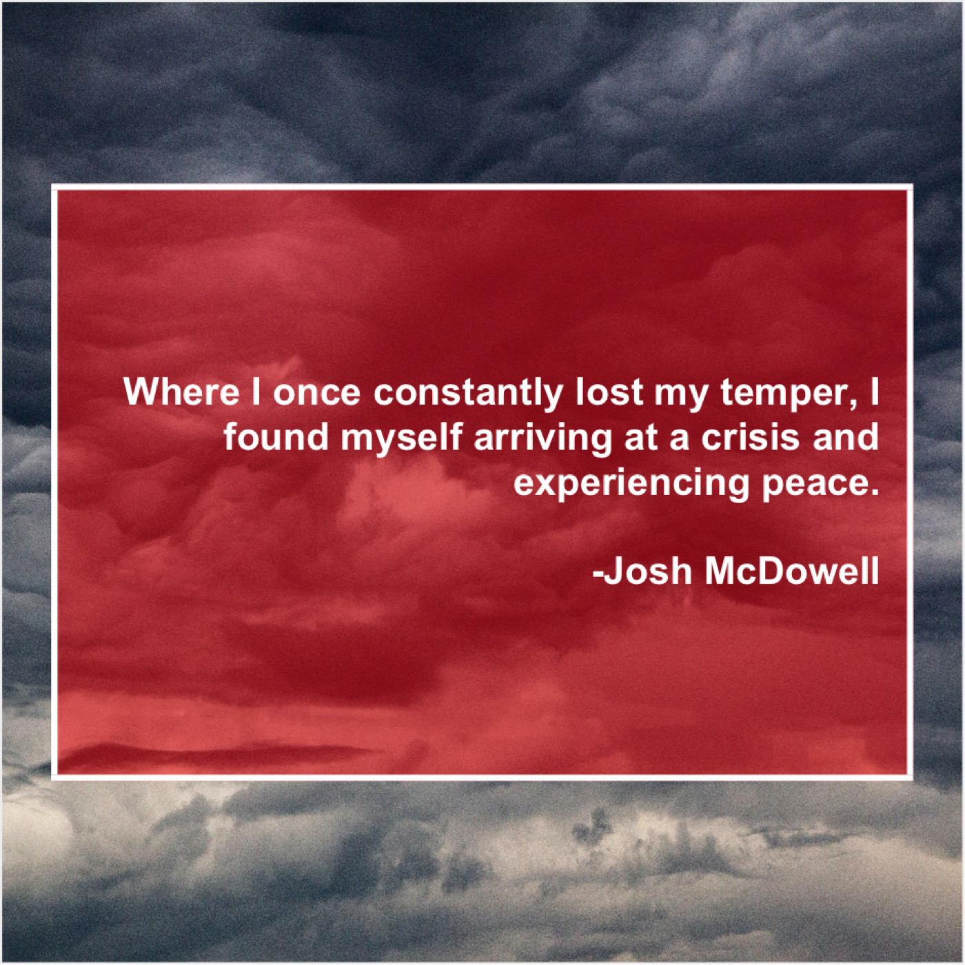 Josh McDowell Josh McDowell – Where I once constantly lost… October 20, 2019 admin “Where I once constantly lost my temper, I found myself arriving at a crisis and experiencing peace.”-Josh McDowell