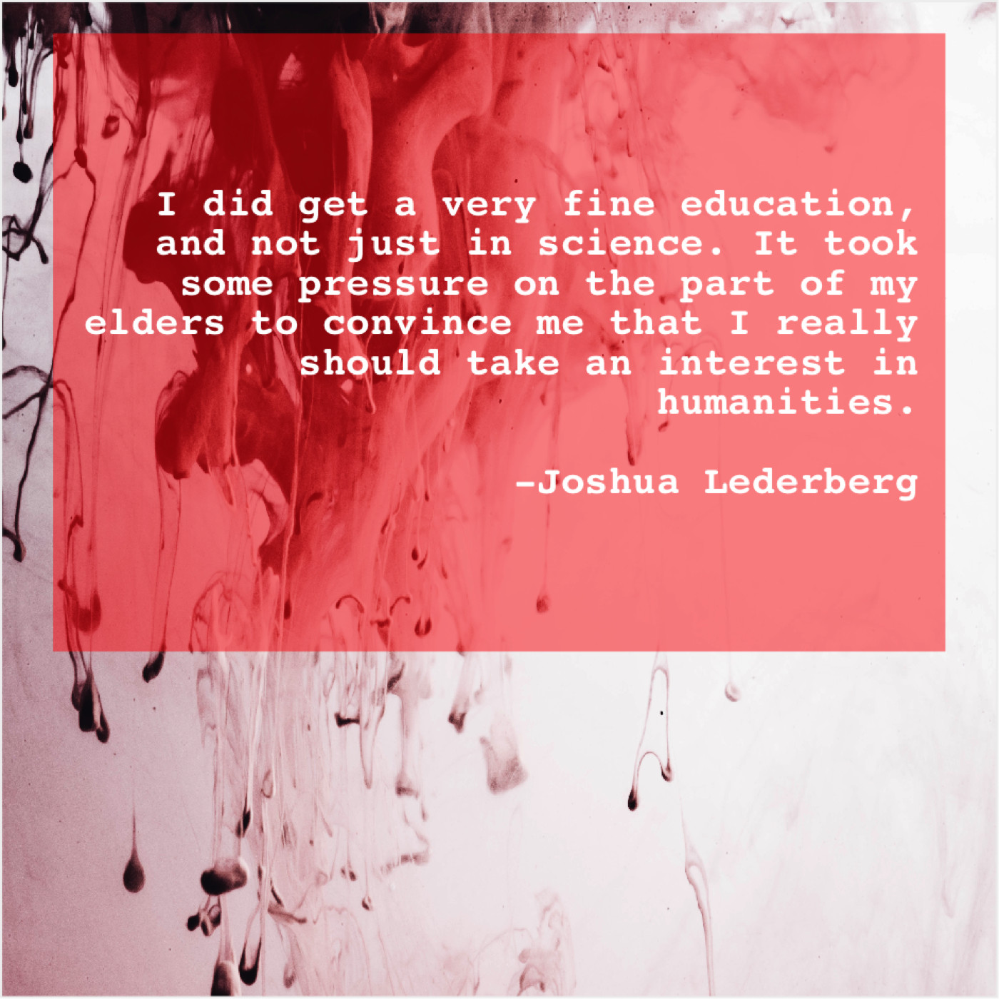 Joshua Lederberg Joshua Lederberg – I did get a very… November 17, 2018 admin “I did get a very fine education, and not just in science. It took some pressure on the part of my elders to convince me that I really should take an interest in humanities.”-Joshua Lederberg