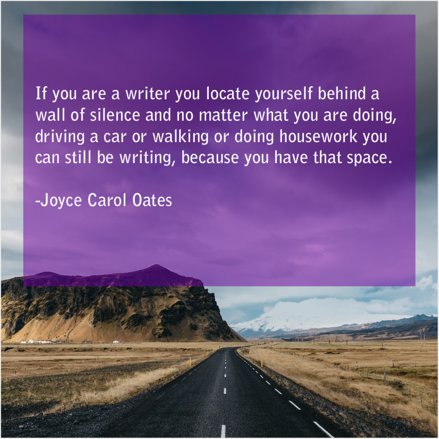 Joyce Carol Oates Joyce Carol Oates – If you are a writer… April 18, 2019 admin “If you are a writer you locate yourself behind a wall of silence and no matter what you are doing, driving a car or walking or doing housework you can still be writing, because you have that space.”-Joyce Carol Oates
