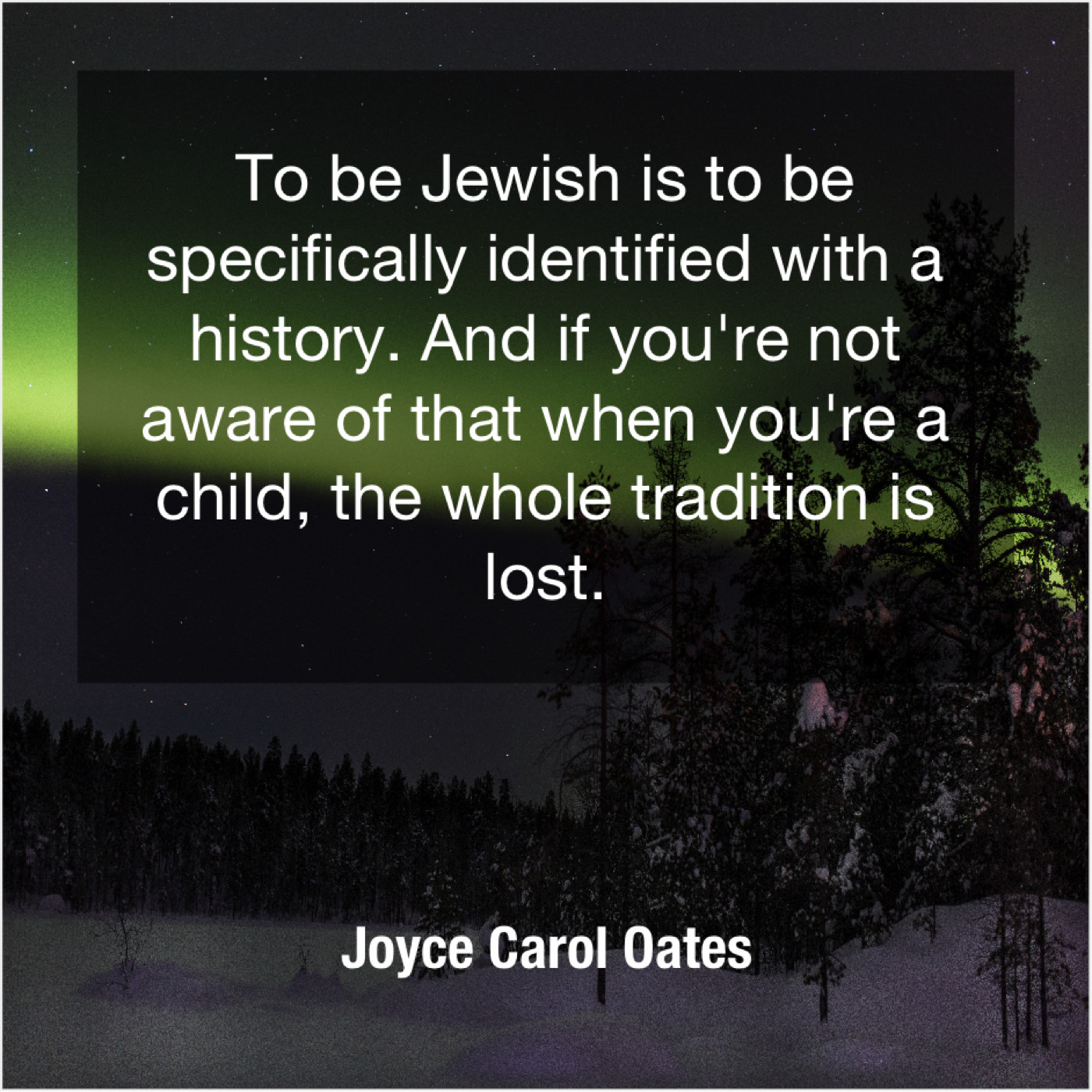 Joyce Carol Oates Joyce Carol Oates – To be Jewish is to… October 28, 2018 admin “To be Jewish is to be specifically identified with a history. And if you’re not aware of that when you’re a child, the whole tradition is lost.”-Joyce Carol Oates