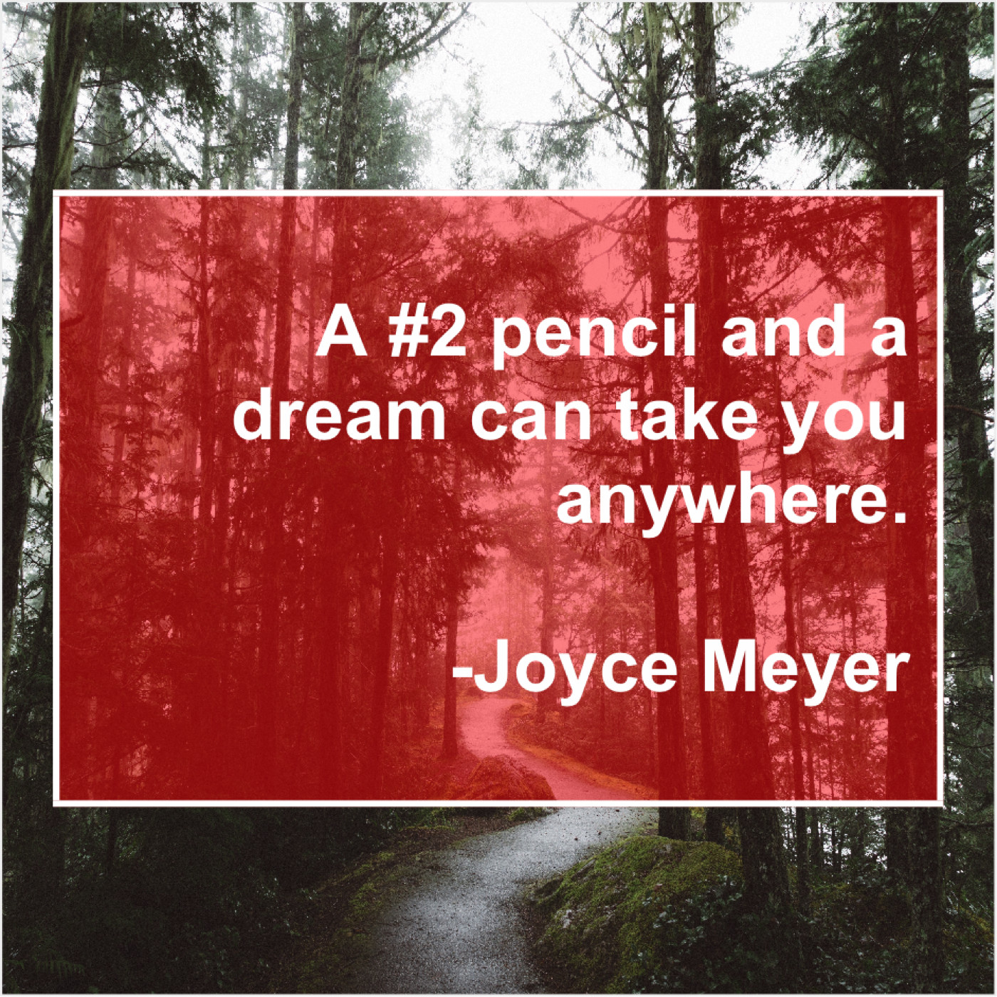 Joyce Meyer Joyce Meyer – A #2 pencil and a… July 27, 2019 admin “A #2 pencil and a dream can take you anywhere.”-Joyce Meyer