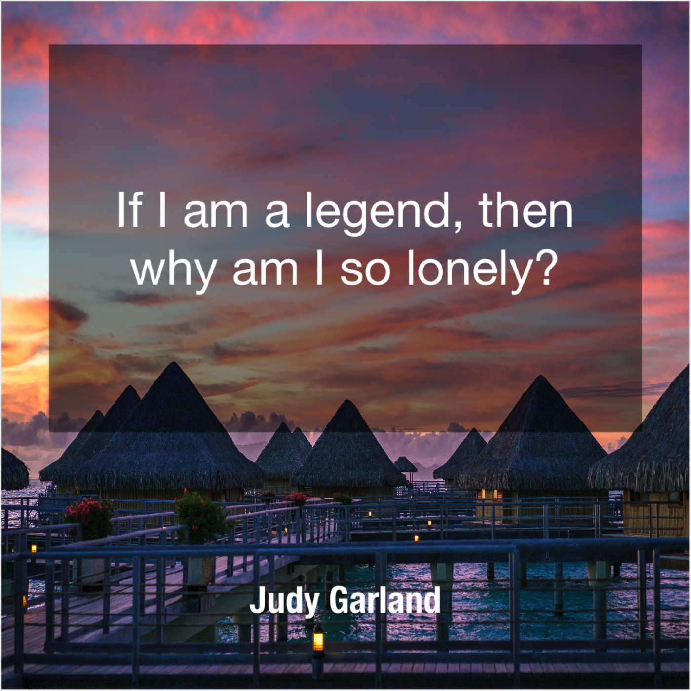 Judy Garland Judy Garland – If I am a legend… September 30, 2019 admin “If I am a legend, then why am I so lonely?”-Judy Garland