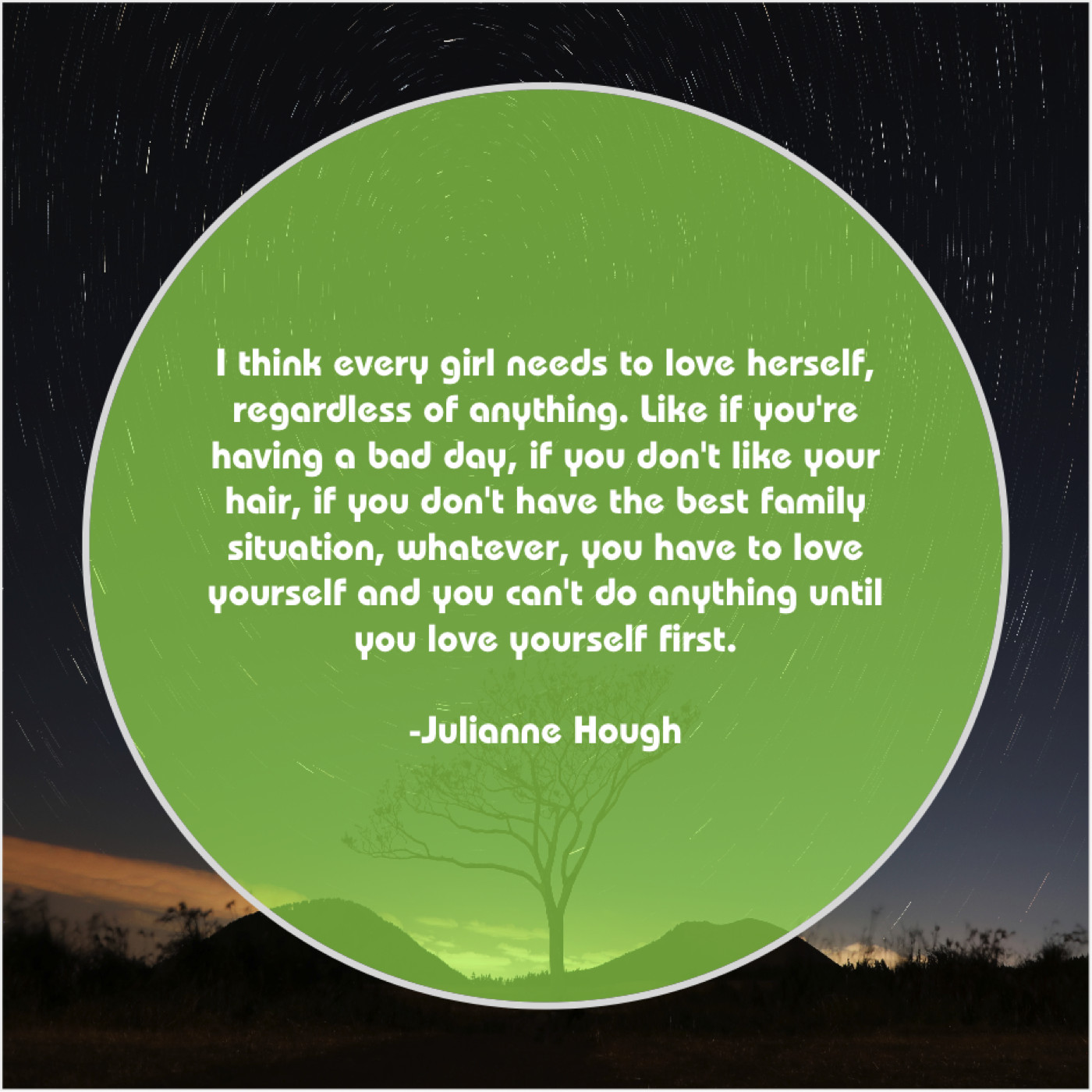 “I think every girl needs to love herself, regardless of anything. Like if you’re having a bad day, if you don’t like your hair, if you don’t have the best family situation, whatever, you have to love yourself and you can’t do anything until you love yourself first.”