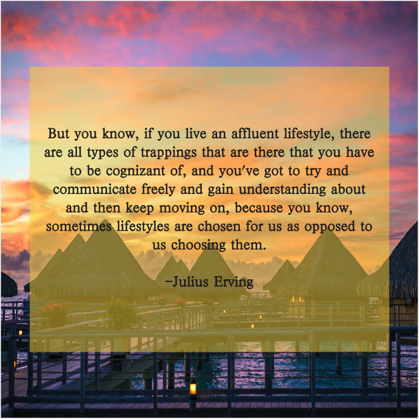 “But you know, if you live an affluent lifestyle, there are all types of trappings that are there that you have to be cognizant of, and you’ve got to try and communicate freely and gain understanding about and then keep moving on, because you know, sometimes lifestyles are chosen for us as opposed to us choosing them.”