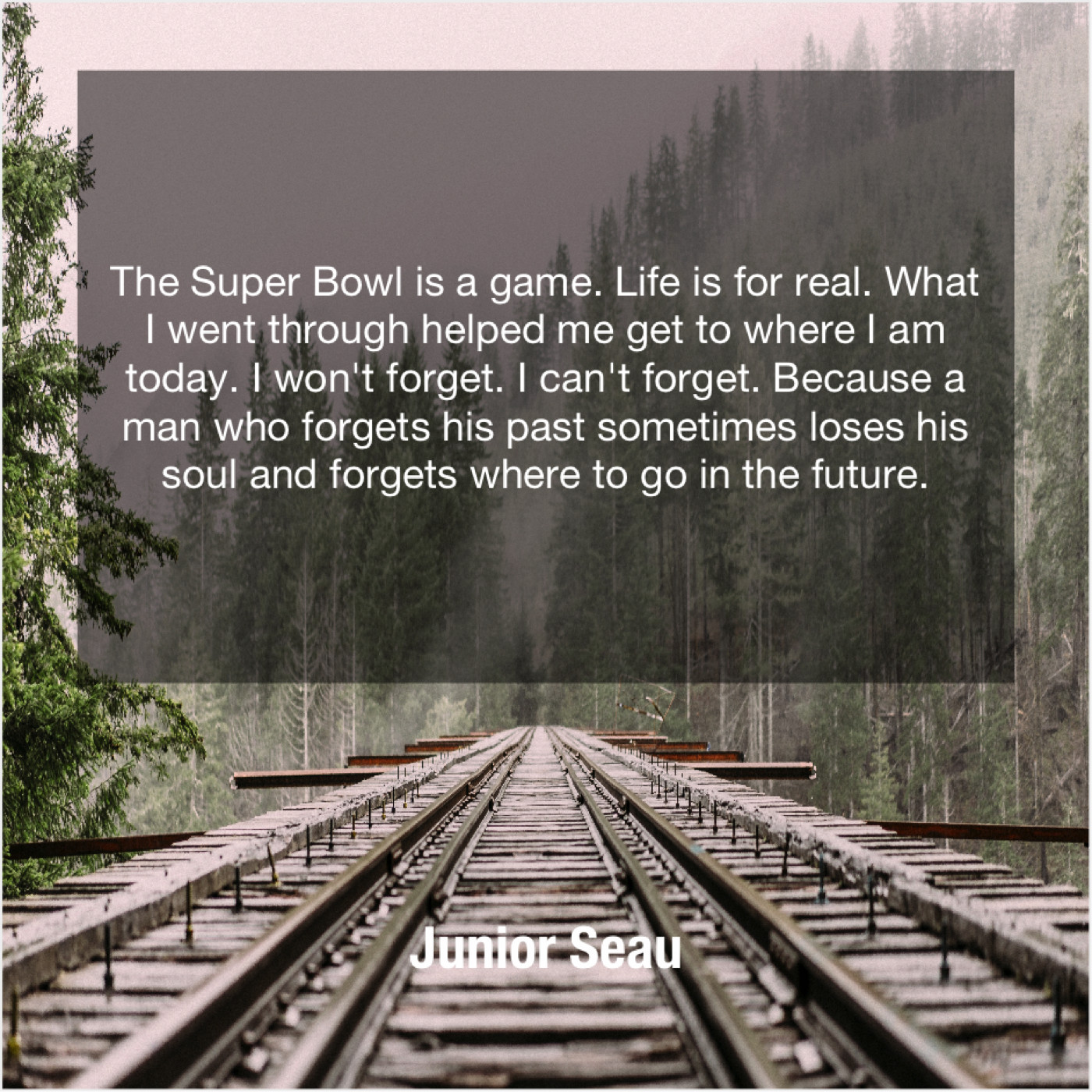 Junior Seau Junior Seau – The Super Bowl is a… October 7, 2019 admin “The Super Bowl is a game. Life is for real. What I went through helped me get to where I am today. I won’t forget. I can’t forget. Because a man who forgets his past sometimes loses his soul and forgets where to go in the future.”-Junior Seau