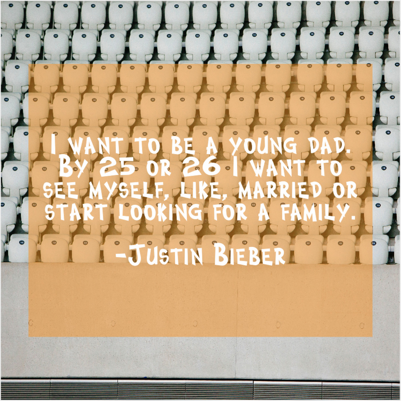 Justin Bieber Justin Bieber – I want to be a… February 3, 2019 admin “I want to be a young dad. By 25 or 26 I want to see myself, like, married or start looking for a family.”-Justin Bieber