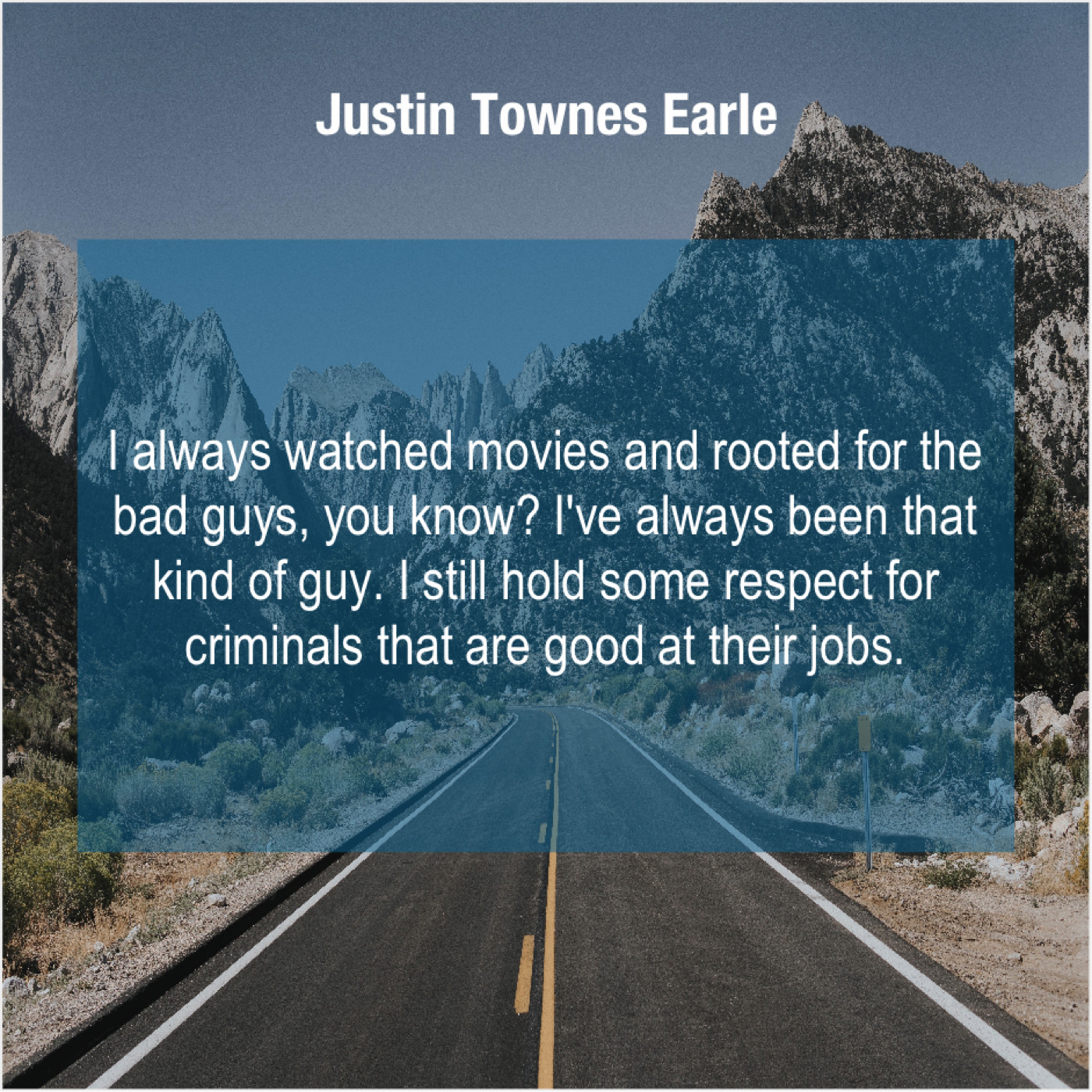 “I always watched movies and rooted for the bad guys, you know? I’ve always been that kind of guy. I still hold some respect for criminals that are good at their jobs.”