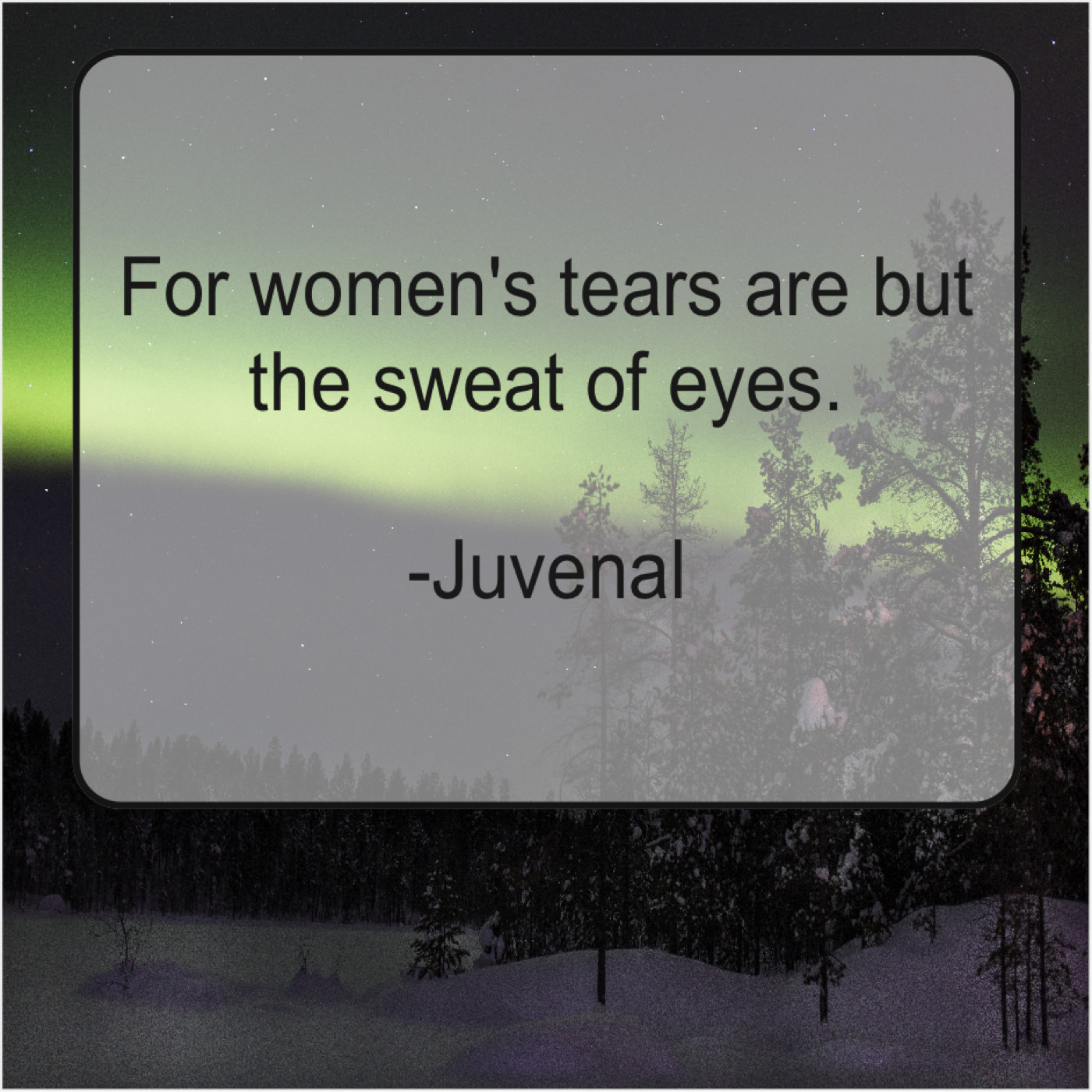 Juvenal Juvenal – For women’s tears are but… August 20, 2019 admin “For women’s tears are but the sweat of eyes.”-Juvenal