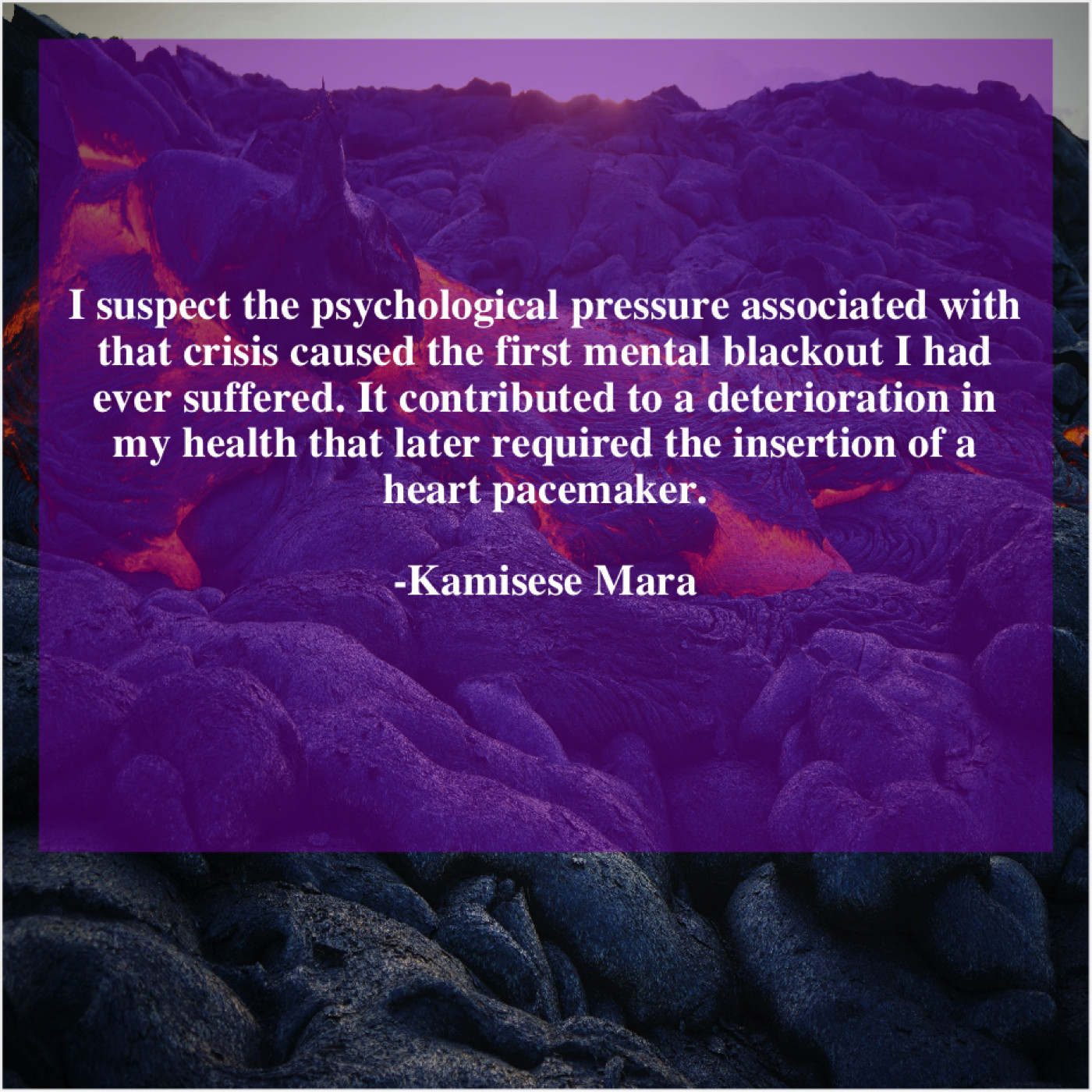 Kamisese Mara Kamisese Mara – I suspect the psychological pressure… March 31, 2019 admin “I suspect the psychological pressure associated with that crisis caused the first mental blackout I had ever suffered. It contributed to a deterioration in my health that later required the insertion of a heart pacemaker.”-Kamisese Mara