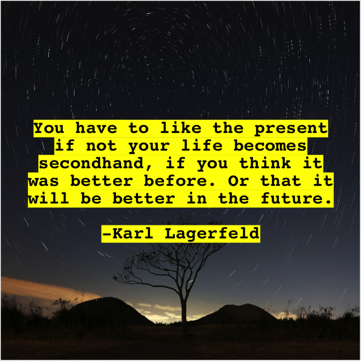 “You have to like the present if not your life becomes secondhand, if you think it was better before. Or that it will be better in the future.”