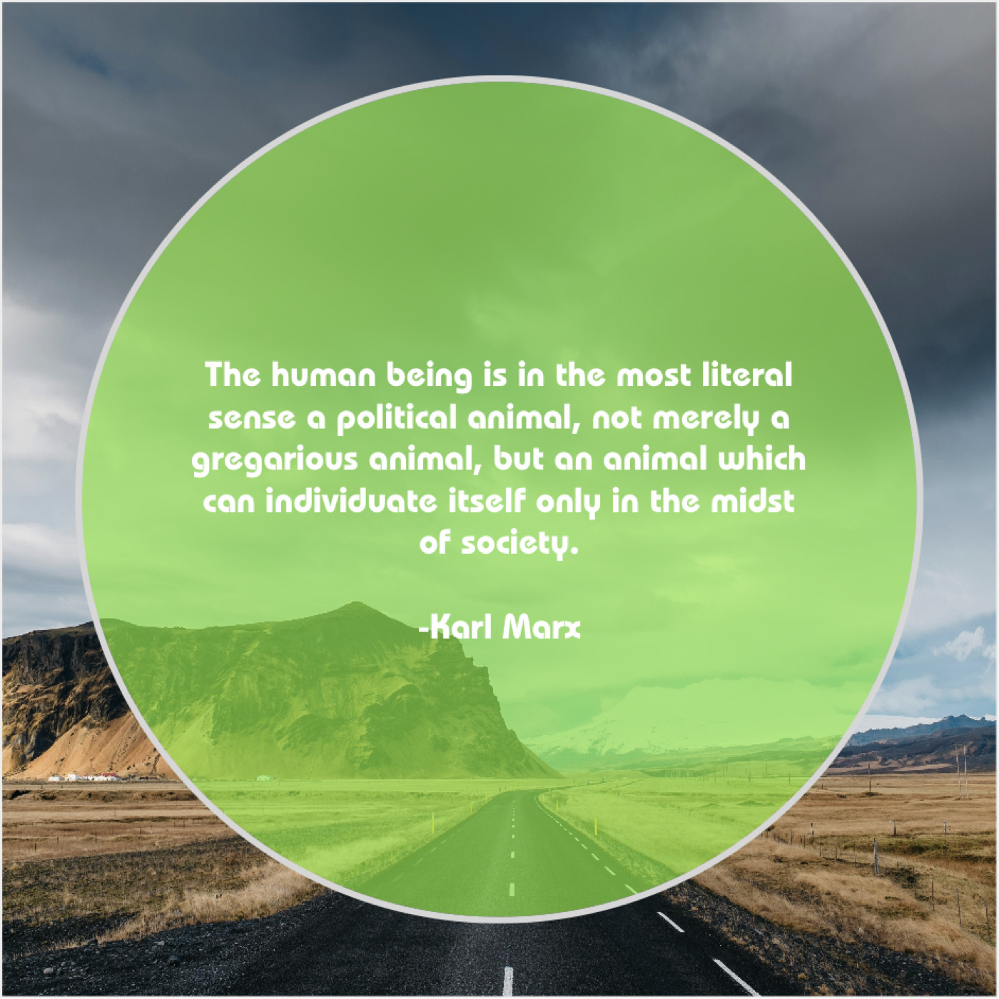 Karl Marx Karl Marx – The human being is in… April 20, 2019 admin “The human being is in the most literal sense a political animal, not merely a gregarious animal, but an animal which can individuate itself only in the midst of society.”-Karl Marx