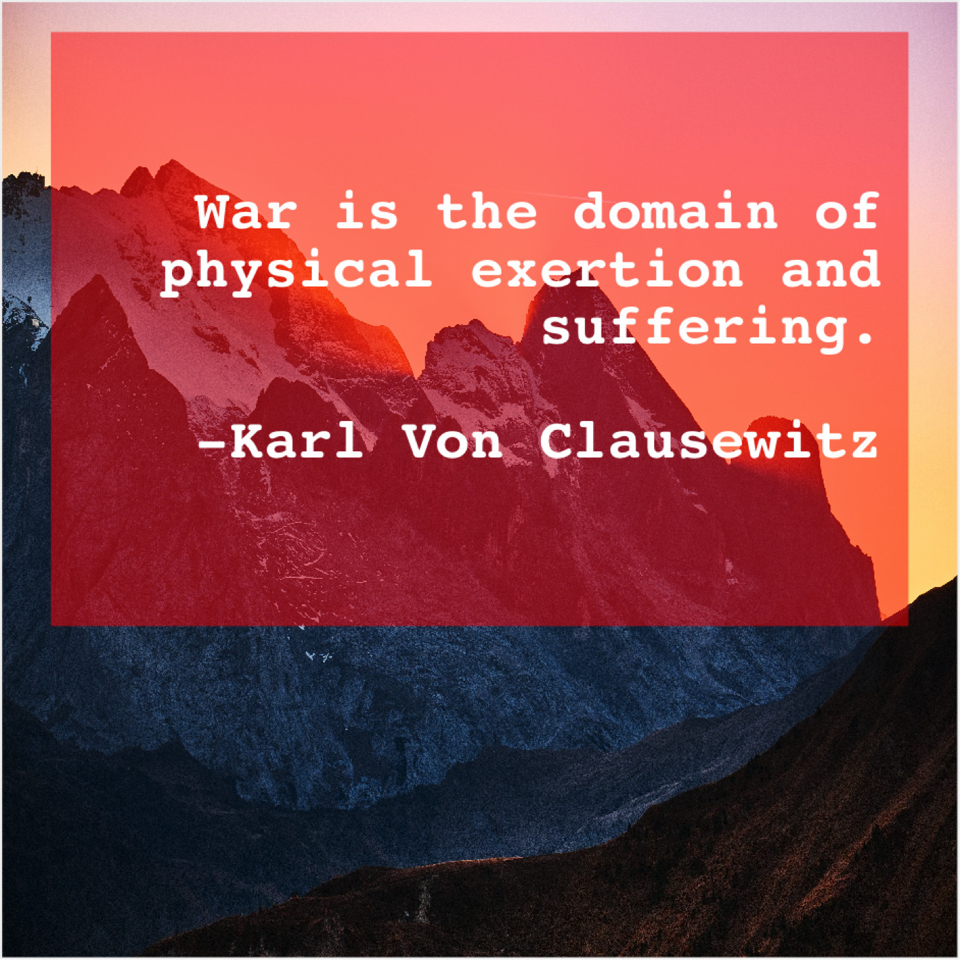Karl Von Clausewitz Karl Von Clausewitz – War is the domain of… October 8, 2019 admin “War is the domain of physical exertion and suffering.”-Karl Von Clausewitz