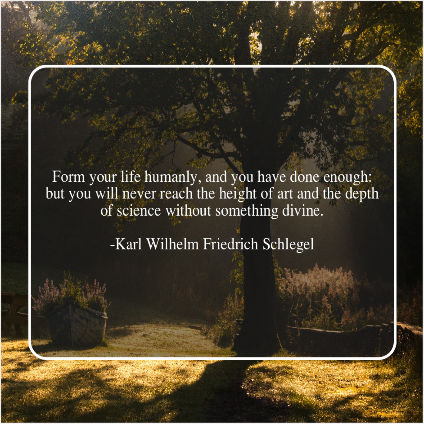 Karl Wilhelm Friedrich Schlegel Karl Wilhelm Friedrich Schlegel – Form your life humanly, and… March 5, 2019 admin “Form your life humanly, and you have done enough: but you will never reach the height of art and the depth of science without something divine.”-Karl Wilhelm Friedrich Schlegel