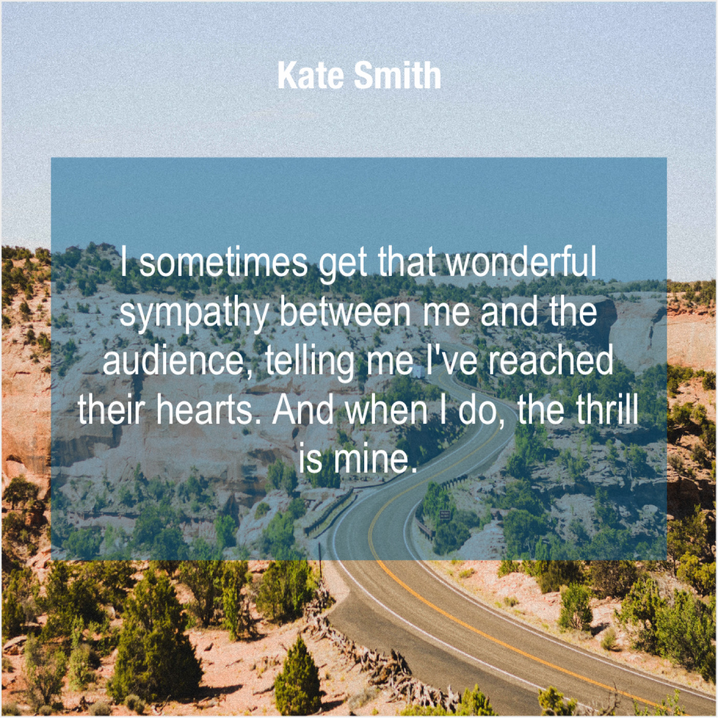 Kate Smith Kate Smith – I sometimes get that wonderful… November 27, 2018 admin “I sometimes get that wonderful sympathy between me and the audience, telling me I’ve reached their hearts. And when I do, the thrill is mine.”-Kate Smith
