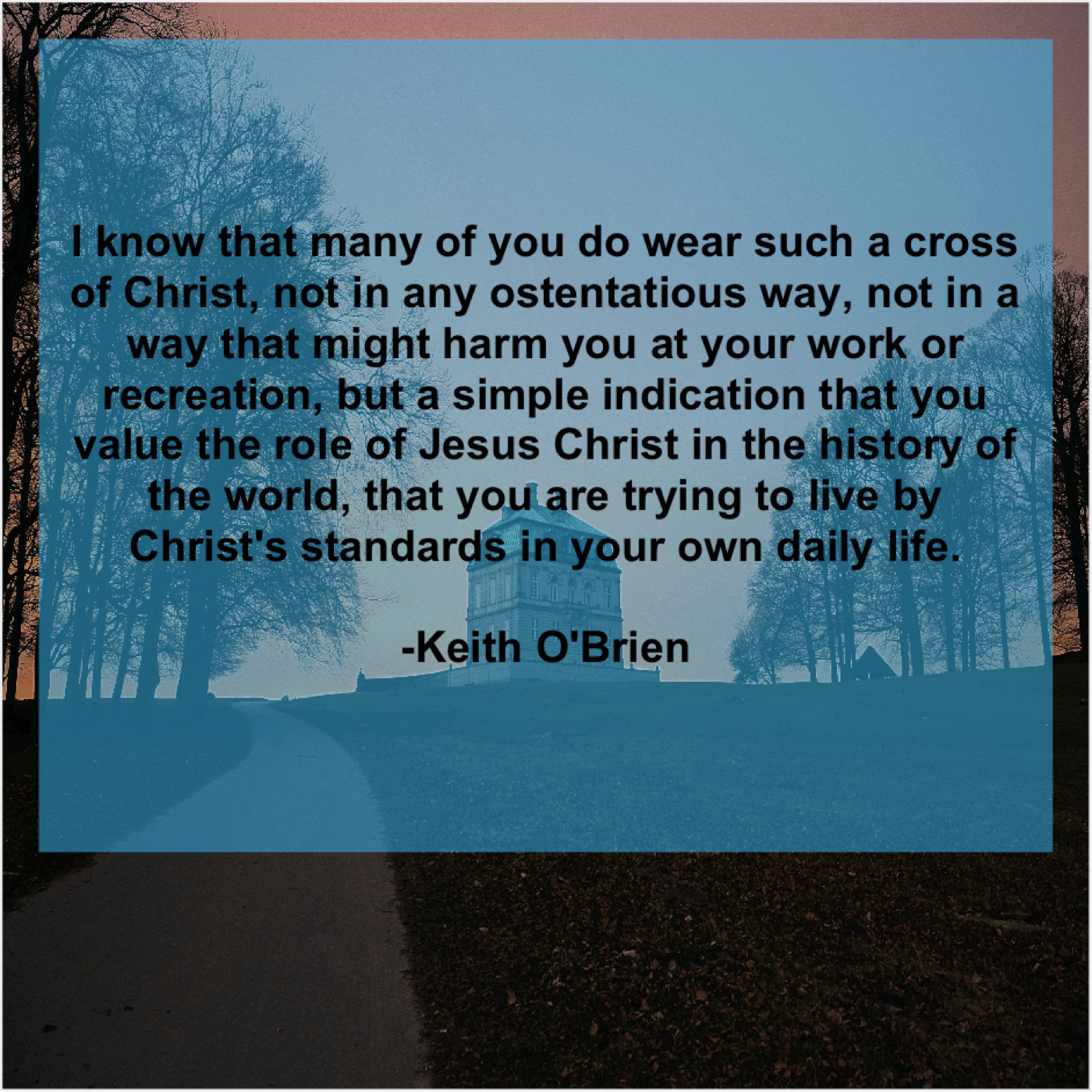 “I know that many of you do wear such a cross of Christ, not in any ostentatious way, not in a way that might harm you at your work or recreation, but a simple indication that you value the role of Jesus Christ in the history of the world, that you are trying to live by Christ’s standards in your own daily life.”