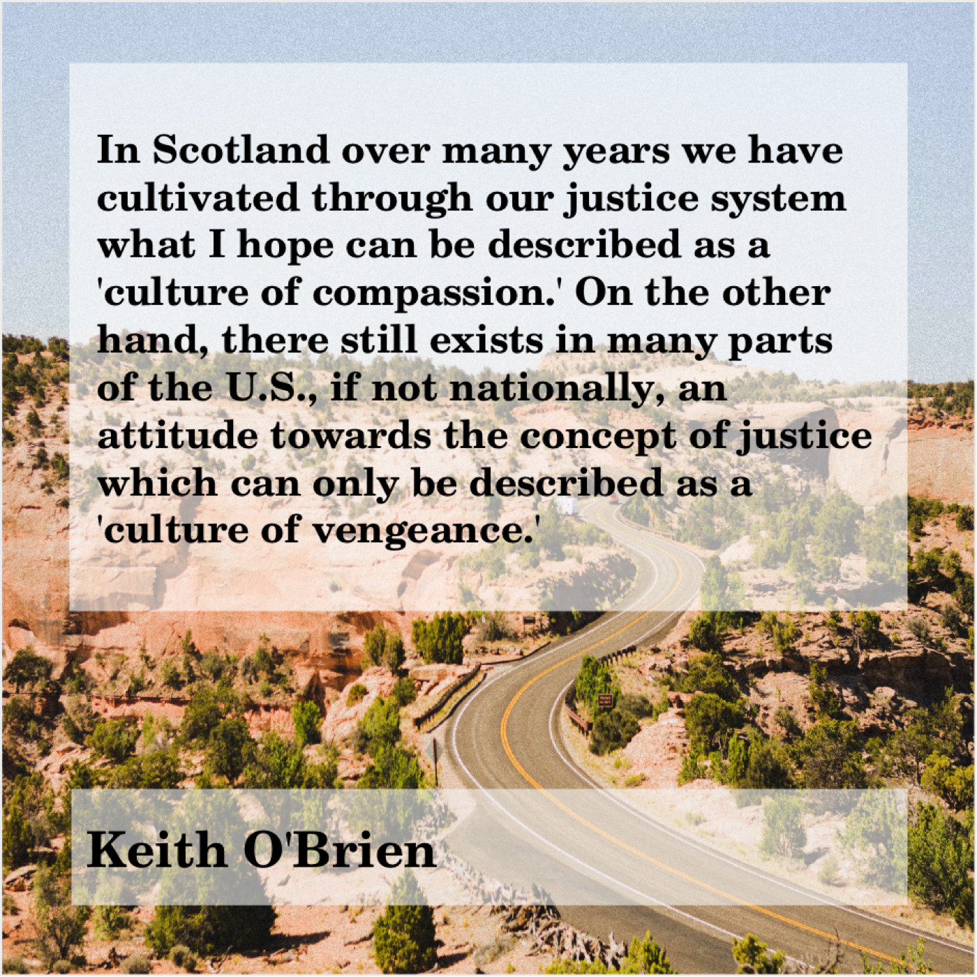 “In Scotland over many years we have cultivated through our justice system what I hope can be described as a ‘culture of compassion.’ On the other hand, there still exists in many parts of the U.S., if not nationally, an attitude towards the concept of justice which can only be described as a ‘culture of vengeance.'”
