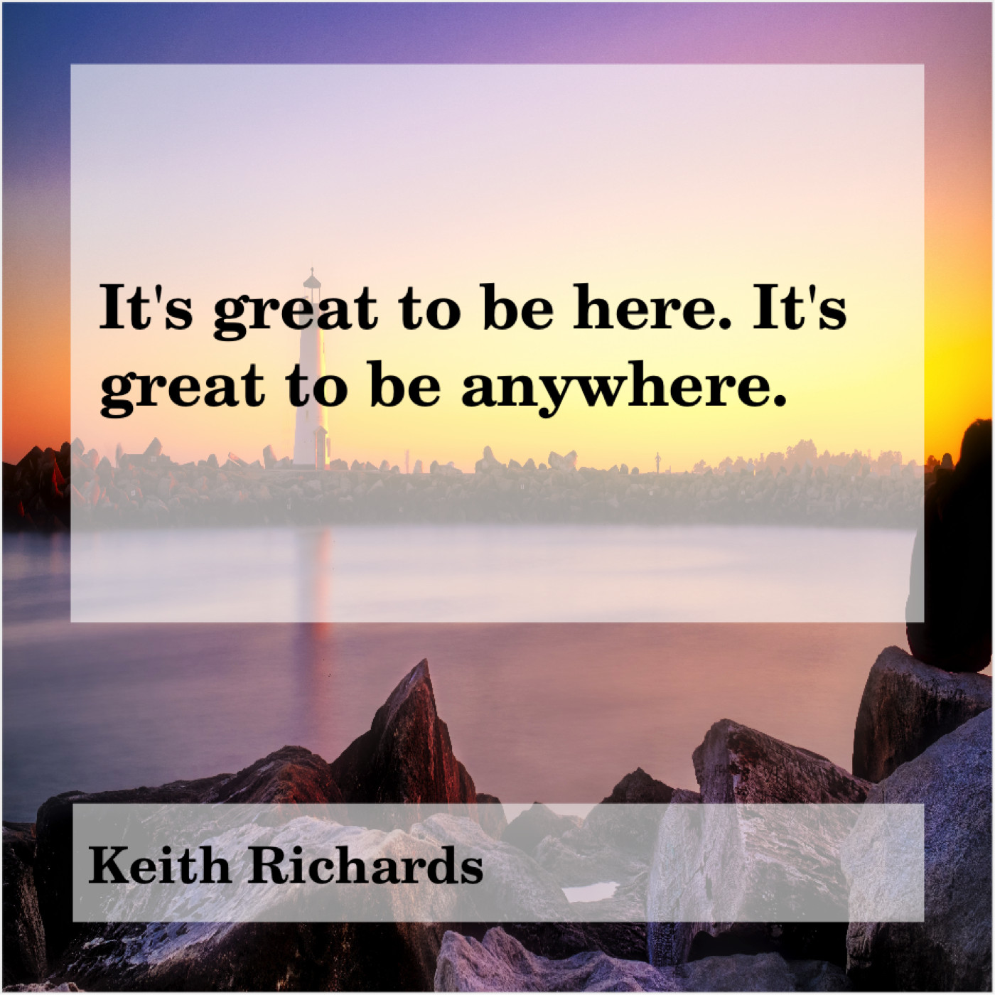 Keith Richards Keith Richards – It’s great to be here… November 17, 2018 admin “It’s great to be here. It’s great to be anywhere.”-Keith Richards